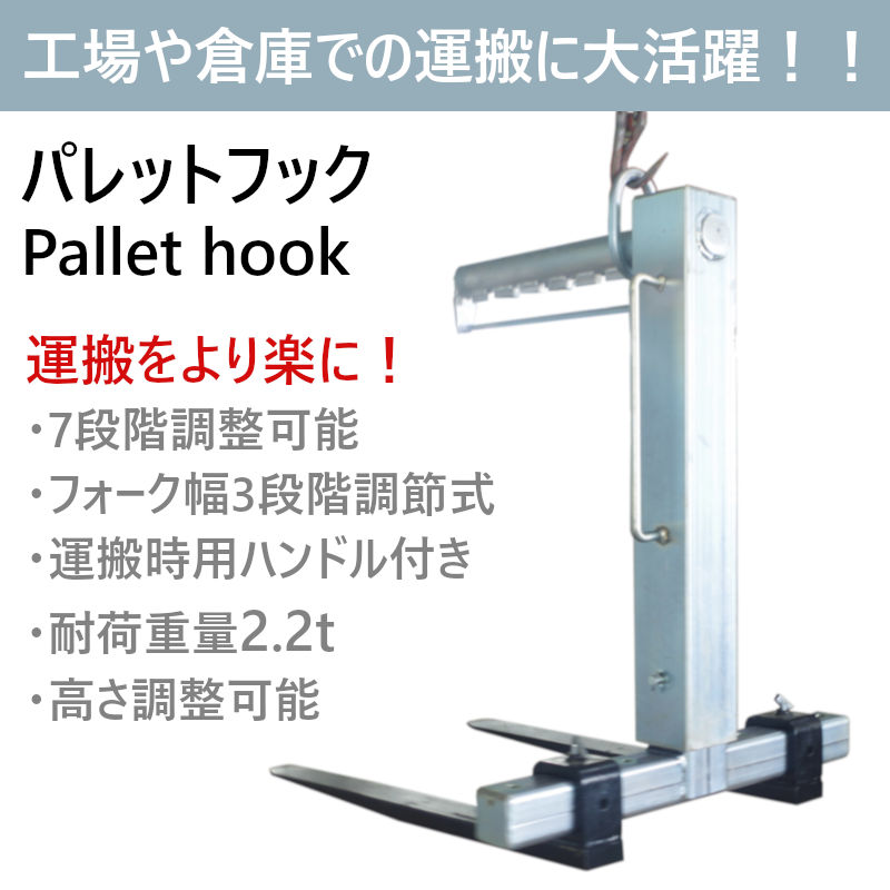 パレットハンガー 荷重 約2200kg phd2200 | パレット ハンガー 約2.2t シルバー クレーン パレットフック ハンドル付き リフター 物流倉庫 パレット運搬 吊り上げ 高所 荷役 積み降ろし 積み込み フォーク用 爪 パレット フォークリフト 吊り具 工場 倉庫 運搬 工業用品