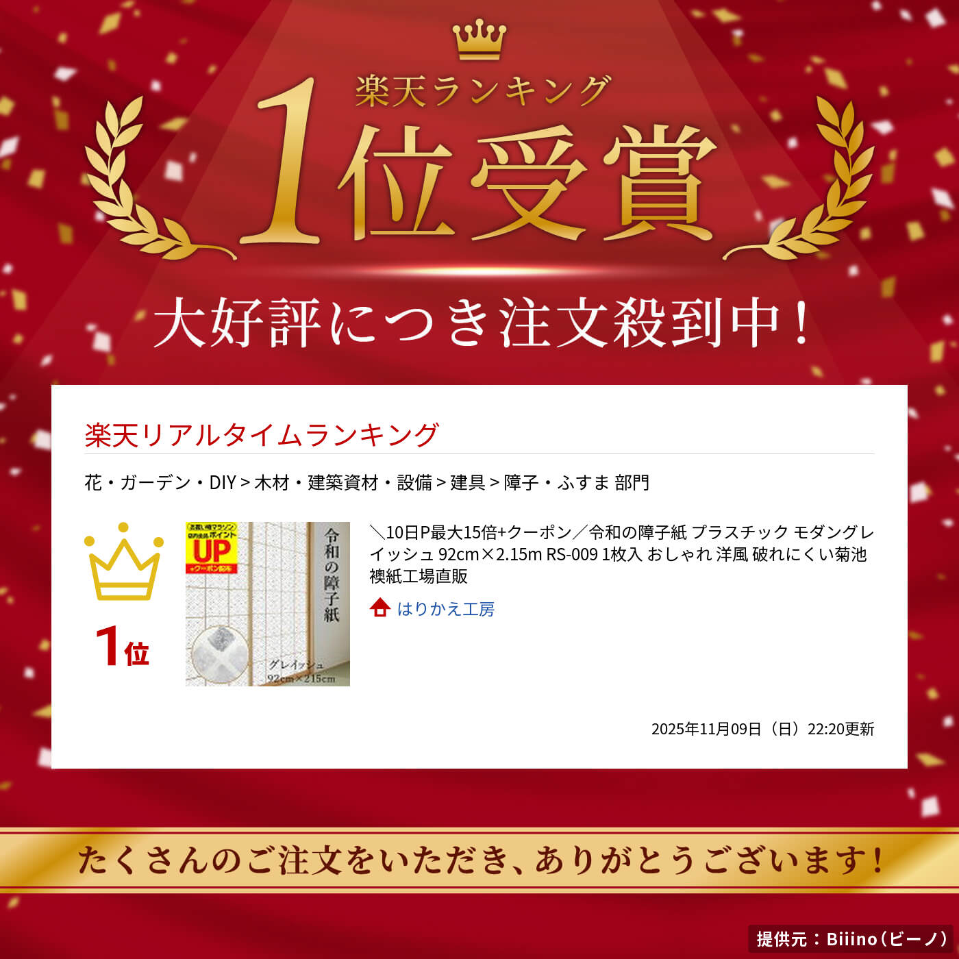品質表示 商品名 令和の障子紙 グレイッシュ(RS-009) 製法 機械漉き 材料 紙面 パルプ85%・ レーヨン・ビニロン15% 中面 ポリプロピレン 裏面 二軸延伸ポリプロピレン 模様 グレイッシュ柄印刷 寸法 紙幅94cm×紙長217cm (デザイン有効サイズ92cm×215cm) 容量 1枚入 張り方 両面テープで貼るタイプ→両面テープで貼る方法☆菊池襖紙工場の両面テープをご使用ください ホルムアルデヒドは含まれておりません 必ずお読みください 必ず専用の強粘着両面テープでお貼りください。障子のリ・アイロンでは貼れません。 夏場の車内などの高温の場所への放置はお避けください。 柄はランダムになりますので、柄合わせはできかねることをご了承ください。 障子枠にのりや埃などが残っているとはがれの原因となりますので、凹凸ないよう綺麗に落とし、平らにしてください。 火に直接触れる恐れのある場所へのご使用はお避けください。 開封時は巻き癖がありますので、障子を貼る際は特に四隅をしっかりと貼り付けてください。 障子紙を貼った後、霧吹きは使用しないでください。 湿気の多いお部屋には結露が出ることもございますので、高温・多湿になる場所へのご使用はお控えください。また、プラスチック面を軽く拭き取りましょう。 本障子紙を取り扱う際は、手を切るなどのケガや静電気にご注意ください。 本障子紙をはがす際は、アイロンを当てるとはがしやすくなります。 専用の両面テープは強粘着のため、はがす際に障子木の一部がはがれやすくなることもあります。 専用の両面テープの容量は、1個で一般的な障子2枚分です。ただし、障子の形状等によっては不足する場合もございます。 ☆商品のパッケージに詳しい貼り方ガイドが載っています。 関連商品 障子張り道具など ・障子用両面テープ ・マスキングテープ ・ローラー ・障子紙ナイフ ・カッターガイド ・障子用はがし剤 同柄の商品 『令和のふすま紙』グレイッシュ お得な2枚セット 規格外商品 規格外 92cm×100cm〜 ☆掲載の画像は、モニターの色彩により異なります。サンプルは、お問合せよりお届け先、お名前を記載しご請求ください。 ※置き配をご希望の場合は、「置き配:宅配BOX」や「置き配:玄関前」など、具体的な場所もご指定ください。宅配BOXに入らない場合やご記入がない場合は、置き配ではなく、通常配達に変更となります。ご了承ください。注目キーワード シンプル モノトーン monotone 知的 大人 クール スタイリッシュ 20代 30代 40代 50代 60代