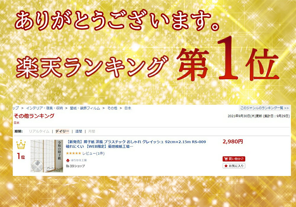 \超ポイントUP+クーポン/令和の障子紙 プラスチック モダングレイッシュ 92cm×2.15m RS-009 1枚入 おしゃれ 洋風 破れにくい菊池襖紙工場直販