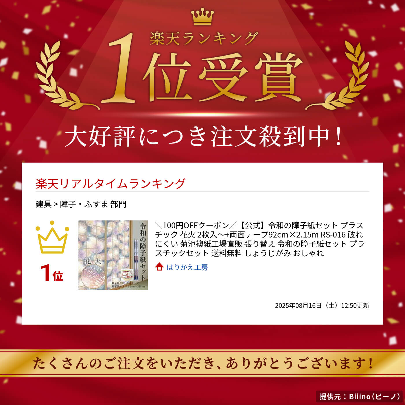 令和の障子紙セット プラスチック 花火 2枚入〜+両面テープ92cm×2.15m RS-016 破れにくい 菊池襖紙工場直販 張り替え 令和の障子紙セット プラスチックセット 送料無料 しょうじがみ おしゃれ