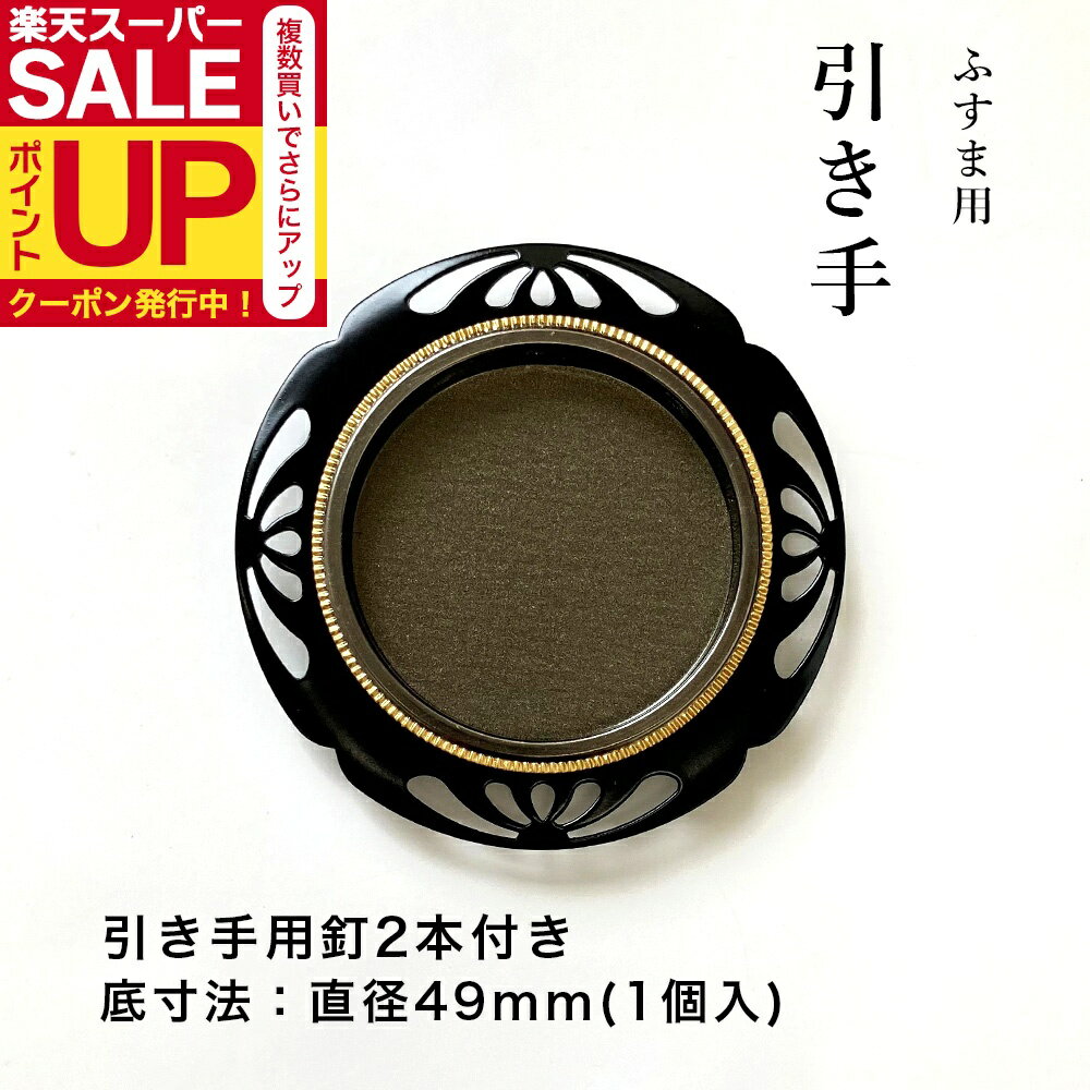 品質表示 商品名 引き手 黒(ブラック)HS-01 内 容 引手1個/引手用釘2本 材 質 鉄 外寸法 75mm 底寸法 直径49mm 座下 6mm 縁巾 13mm 色違い ウルミ(茶褐色) 関連商品 一緒にふすま紙を選ぶ 配送料金についてのご注意 ・日本郵便 ゆうパケットでのお届けとなります。 日時指定および置き配は、出来かねます。郵便受けへのお届けとなります。 送料は4個まで360円、それ以上または同梱商品の場合、ご注文後に当店にて通常送料950円に変更します。 ・お急ぎ・お届け指定がある場合は、「宅配便」をご選択ください。ご注文後に当店にて通常送料950円に変更します。 後払い決済も通常配送料金となります。ご了承ください。四方に咲く菊の花が、ふすまに上品な華やかさを添えるハイセンスな引手です。 裏面 パッケージデザイン(予告なく変更になる場合がございます。) ※ステンレスと金物の引手は、穴が小さめに開いています。 ↓↓↓ 引手釘が古く外れてしまう場合は、引手の穴を調整するとしっかり釘が刺さり安定します。