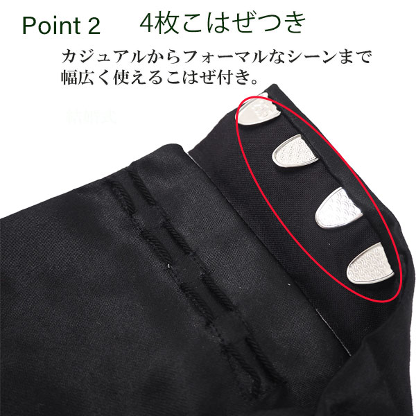 高級・繻子黒足袋 メンズ 4枚コハゼ 高級感ある朱子生地 なめらかな触り心地でつや感のある紳士用黒足袋です。 和装には欠かせない定番足袋です。 足袋の裏生地には、晒(さらし)が使われており、 手ぬぐいのようなさらさらとした薄手の生地で、 暑い時期でも快適に過ごせます。 また、最近では冬でも暖房がある空間が多いため、 年中履くこともできます。 深みのある黒色で引き締まった印象の足元に。 「こはぜ」は4枚。 しっかりと足にフィットします。 色柄 黒 無地 (底:白) 4枚ハコゼつき 素材 綿 100% 日本製 サイズ 【サイズ】7サイズ展開25.0~28.0cm(0.5cm刻み) ご使用について 摩擦により色落ちする可能性がございます。 ご了承ください。 ※画像は商品のお色目に近づけておりますが、モニター等の環境により、誤差が生じる場合がございます。予めご了承くださいませ。メンズ男性用の黒足袋です。 和装には欠かせない定番足袋です コハゼは4枚。しっかりと足にフィットします!