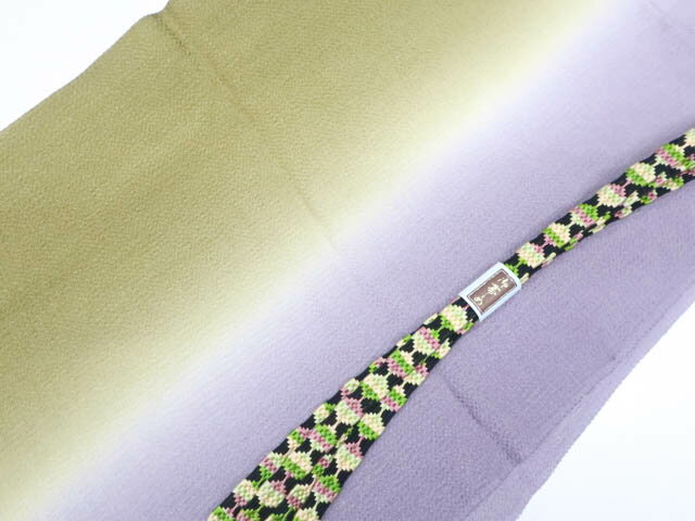 商品詳細情報 素材 絹 100% 長さ 約154cm(房含まず) 幅 約1.4cm 適用お着物 訪問着、付下げ、色無地、小紋、紬など 関連商品 礼装用帯締め一覧 洒落向き帯締め一覧 帯揚げ一覧 備考欄 京都「衿秀」、日本製。【衿秀】正絹 特選 帯締め 綾竹ぼかし 渋木加工ぼかし染め 日本製 美しい色合い〜、フォーマルからお洒落用まで幅広く使える帯締め きもの 和<なごみ>セレクト、フォーマル向け、綾竹ぼかしの帯締め。和装小物専門店、京都「衿秀」謹製です。 美しいぼかしが特徴。こちらは、フォーマル用からお洒落用まで、万能にお使いいただけます。 渋木加工ぼかし染めは、柿渋で染め化学染料で着色しているため、色彩に深みがでて、味わいがある仕上がりになっています。 さらに、密に組まれた綾竹組は、程よい柔らかさで、見た目の美しさに加えて、締めやすさも抜群。非常にしっかりとした帯締めは、帯の素晴らしさをより一層引き立ててくれます。 訪問着や付下げなどのフォーマルな装いから、小紋や紬などお洒落用に、ぜひどうぞ。 深みのある色合いのぼかし染め帯締め。結ぶ部分がぼかしになっています。2色の上品な色の組み合わせが素敵です。 房は、扱いやすい高級感のある『撚り房』です。 下記より、お好きなお色をお選びくださいませ。画像クリックで拡大します。 この商品のカテゴリ一覧へ(フォーマル向き帯締め一覧) 合わせる帯揚げ一覧へ( 絞り・友禅・柄物 帯揚げ一覧)
