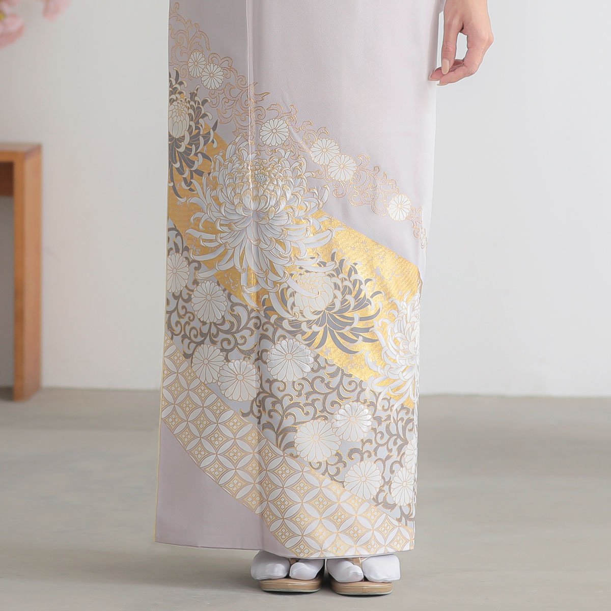 色留袖レンタル フルセット【レンタル】桂由美「E293 藤鼠 菊に唐草七宝 」 留袖 レンタル レンタル留袖 姉 妹 従姉妹 叔母 伯母 色留袖 結婚式 レンタル 留袖 ホテル・式場への配送OK!