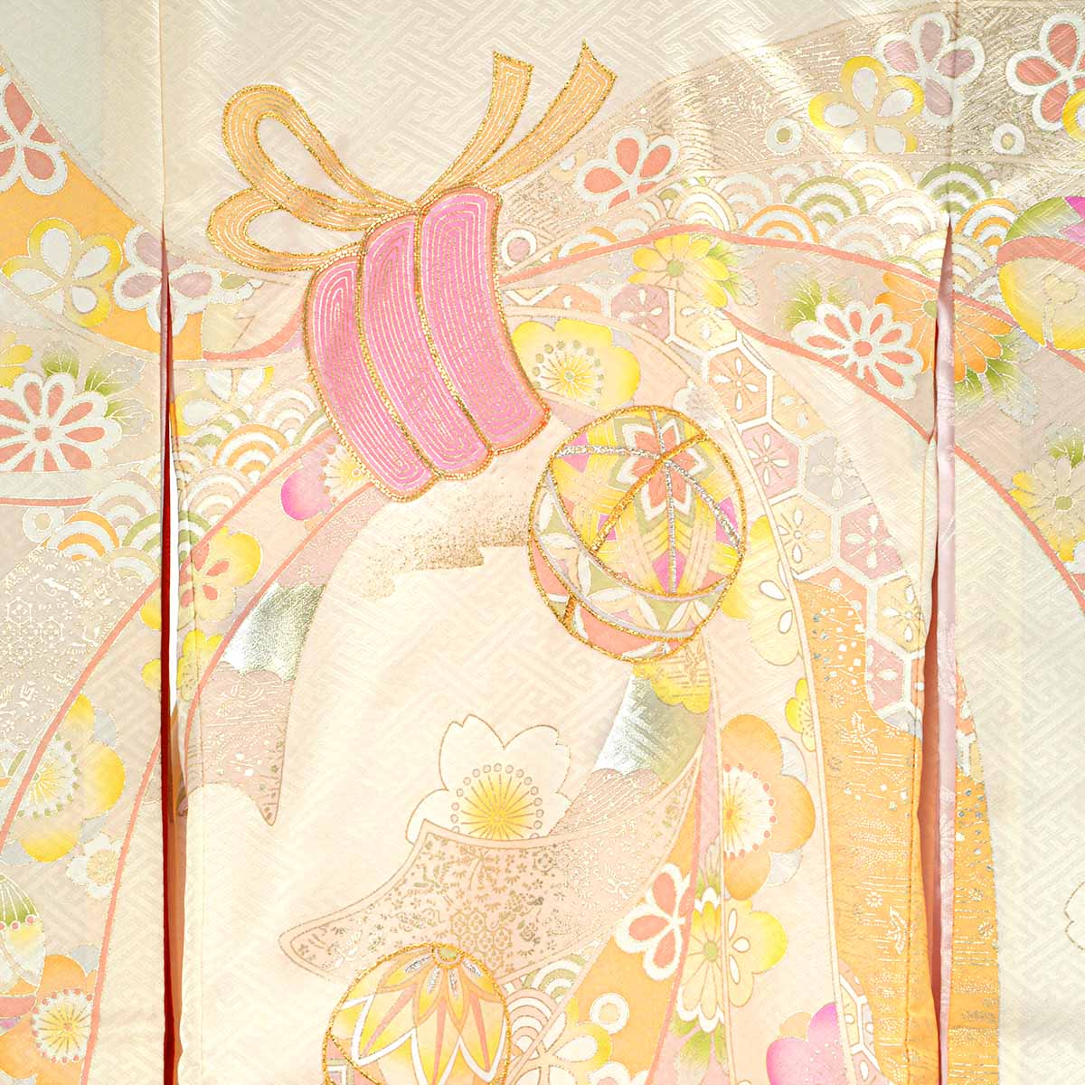 【レンタル】お宮参り 産着 レンタル 女の子 産着レンタル 祝い着「SG078 クリーム 熨斗束に手毬」赤ちゃん 初着セット ベビー服 子供 子ども のしめ 女の子 女 掛け着