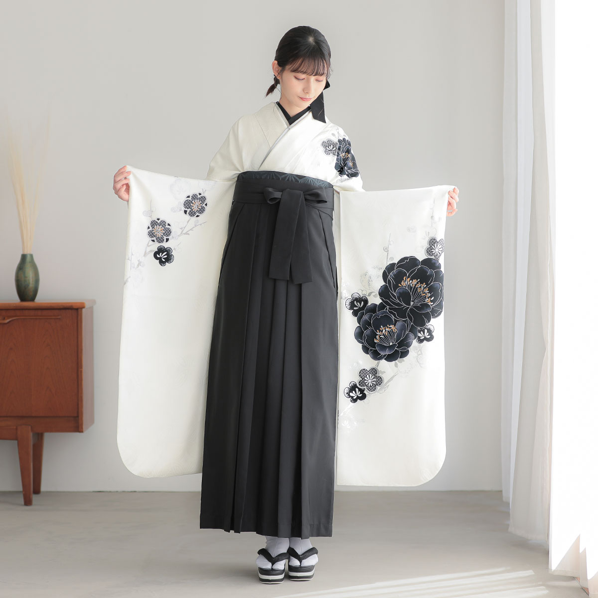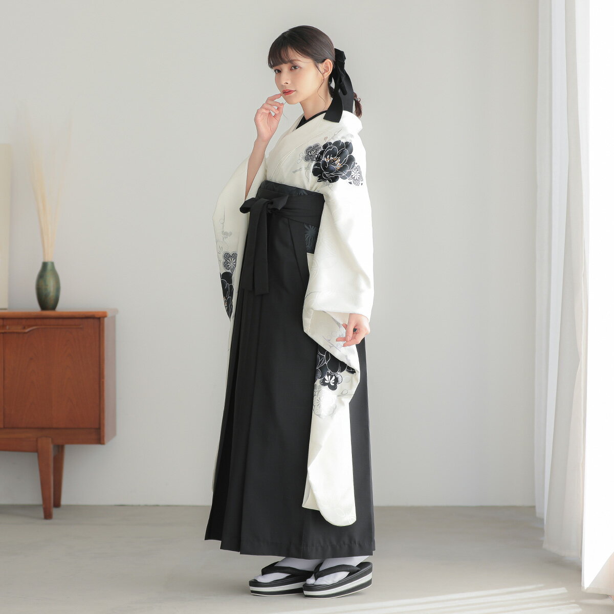 早期お届けキャンペーン【レンタル】袴 レンタル 卒業式 女 袴セット 振袖&袴〔RR2122〕「白 黒梅」 フルセット 貸衣装 女 レディース 送料無料