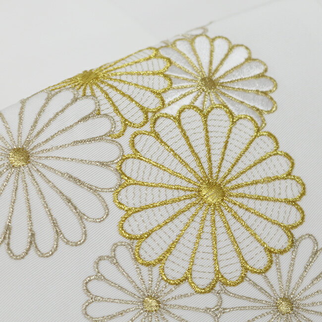 刺繍 半襟 振袖 菊刺繍 赤 白 黒 古典 レトロ 礼装 成人式 ママ振袖素材ポリエステル100%サイズ(約)巾約16cm×長さ約112cm豪華な菊の刺繍の半衿です。シンプルなデザインですが、着付けた時の華やかさは目を見張るものがあります。ママ振袖にも似合う正統な古典派半襟です。成人式、卒業式など晴れやかな日の装いに最適です。白地のものは留袖や訪問着にもお使いいただけます。実際の生地の色合いは生地UP画像を参考にしてください。写真の光加減や、ご覧いただく環境によって色味が若干異なる場合がございます。京都の風情とともに歩んできた和装メーカー、アンドウ株式会社のネットkimonocafeは、やさしく暮らしに寄り添う和の装いを提案しています。普段から楽しめる着物をはじめ、夏を心地よく彩る浴衣や浴衣帯、下駄まで、細やかな気配りが感じられるものづくりが特長です。華やかな振袖は成人式という大切な一日を美しく演出し、帯揚げや帯締め、髪飾りなどの小物も含めて、装い全体の調和を大切にしています。また、卒業式に向けた袴スタイルでは、バッグや草履との組み合わせにも配慮し、上品でやわらかな印象に仕上げています。半衿や重ね衿といった細部にまで心を込め、日本の伝統を今の時代へ丁寧につないでいる会社です。kimonocafe kimono style正統派古典の半衿。一見シンプルなデザインですが、着けてみるとその華やかさに驚きます。古典系振袖を着られる方や、くっきりとした衿元を好まれる方にお勧めの半襟です。丁寧な国内での刺繍緻密に細かく打って、くっきりとした浮かび上がるような刺繍にしています。しっかり洗えるから長持ち正絹に見えて実はポリエステルだから家で衿汚れをしっかり落とせます。保管している間にシミになったら勿体無いのでちゃんと洗えるのも大事ですよね。