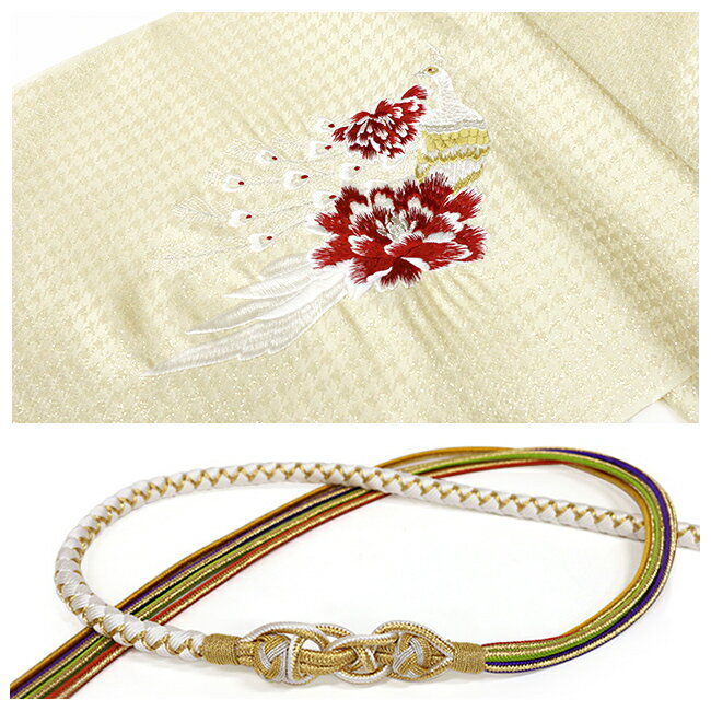 \全品ポイント10倍中/ 訳あり 振袖 帯揚げ 帯締め 2点セット 孔雀 刺繍 金通し 組紐 苧環 ホワイト ターコイズ レディース 婦人 女性 成人式 【LINE登録で5%OFF】