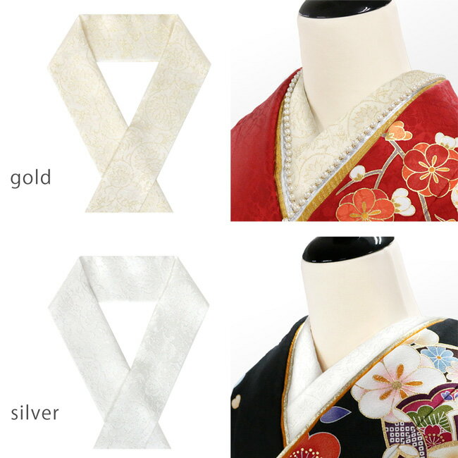 半衿 振袖 刺繍 花更紗 ゴールド ホワイト 半襟 成人式 卒業式 結婚式 袴 訪問着素材:レーヨン52%、絹41%、ポリエステル7%サイズ(約)幅16cm×長さ115cmこの製品は強い摩擦や汗・水濡れにより色落ちが生じる場合がありますのでご注意ください。日本製写真の光加減や、ご覧いただく環境によって色味が若干異なる場合がございます。メール便:1枚のみ可能京都の風情とともに歩んできた和装メーカー、アンドウ株式会社のネットkimonocafeは、やさしく暮らしに寄り添う和の装いを提案しています。普段から楽しめる着物をはじめ、夏を心地よく彩る浴衣や浴衣帯、下駄まで、細やかな気配りが感じられるものづくりが特長です。華やかな振袖は成人式という大切な一日を美しく演出し、帯揚げや帯締め、髪飾りなどの小物も含めて、装い全体の調和を大切にしています。また、卒業式に向けた袴スタイルでは、バッグや草履との組み合わせにも配慮し、上品でやわらかな印象に仕上げています。半衿や重ね衿といった細部にまで心を込め、日本の伝統を今の時代へ丁寧につないでいる会社です。kimonocafe kimono style上品な華やかさ 花更紗半衿金通しがキラキラと光り、シックでありながらも華やかな存在感のある華更紗の半衿です。振袖や袴、訪問着にご使用いただけます。goldややクリームがかった生地に金糸が織り込まれた温かみのあるカラーです。silver白地に銀糸が織り込まれたすっきりとしたカラーです。