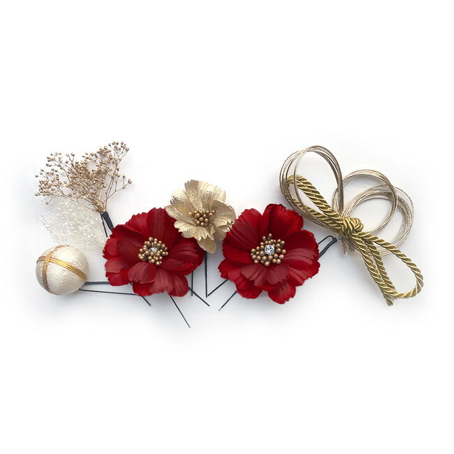 振袖用髪飾り 7本セット 24W110 赤 オレンジ 紫 成人式 髪型 ヘアセット 最新 流行 洋風 花 和風素材ポリエステル等サイズ(約)大 直径7cm小 直径5cmリボン 横12cm×縦4cmボール 直径4cm振袖用の髪飾りです。マーガレットが3本とボールを組み合わせた、和と洋のコンビが可愛い人気の髪飾りです。成人式での振袖や卒業式での袴に合わせてお使いください。一部本物のドライフラワーを使用しておりますので、細かな枝が切れたりする折れたりする場合がございます。あらかじめご了承ください。実際の生地の色合いは生地UP画像を参考にしてください。写真の光加減や、ご覧いただく環境によって色味が若干異なる場合がございます。京都の風情とともに歩んできた和装メーカー、アンドウ株式会社のネットkimonocafeは、やさしく暮らしに寄り添う和の装いを提案しています。普段から楽しめる着物をはじめ、夏を心地よく彩る浴衣や浴衣帯、下駄まで、細やかな気配りが感じられるものづくりが特長です。華やかな振袖は成人式という大切な一日を美しく演出し、帯揚げや帯締め、髪飾りなどの小物も含めて、装い全体の調和を大切にしています。また、卒業式に向けた袴スタイルでは、バッグや草履との組み合わせにも配慮し、上品でやわらかな印象に仕上げています。半衿や重ね衿といった細部にまで心を込め、日本の伝統を今の時代へ丁寧につないでいる会社です。kimonocafe kimono style最新!振袖用髪飾り成人式で着る振袖に合わせる髪飾りの新作です。人気の水引、ボール、カスミソウを詰め込んだ外れ無しの7本セットです。7本セットの良いところはヘアスタイルに合わせて柔軟にアレンジできるうえ、飾り方によってガラッと印象も変わるところですね!もちろん振袖だけではなく、袴や二尺袖にも合わせてただけますよ!redred使用イメージorangeorange使用イメージashpurpleashpurple使用イメージpinkbeigepinkbeige使用イメージ