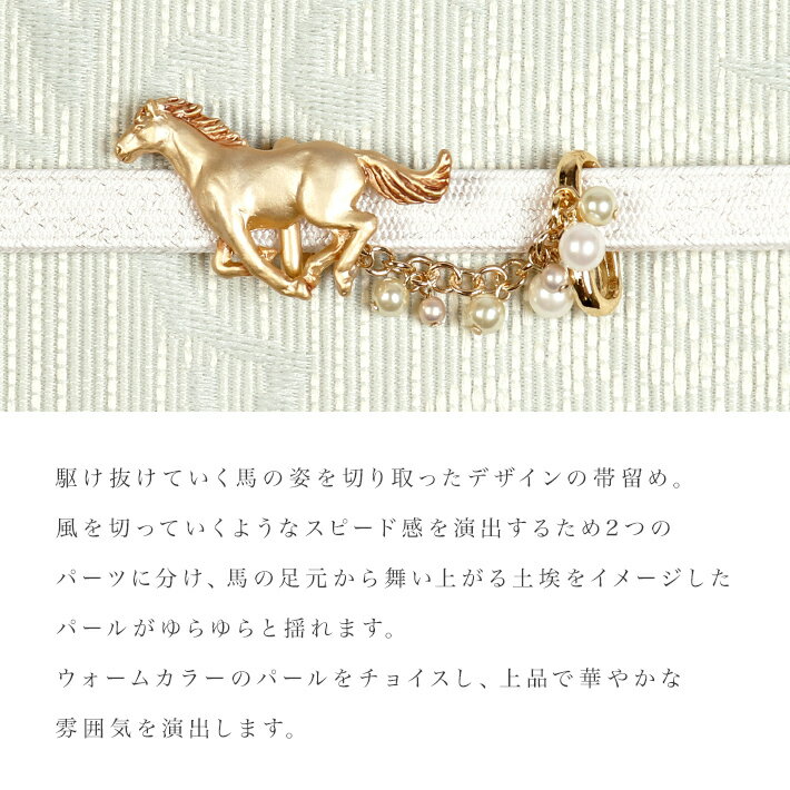 帯留め 疾駆 馬 帯飾り 数 -suu- 箱付き Palnart Poc (パルナートポック) 帯どめ お祝い ウマ 動物 ゴールド パール かわいい アクセサリー おしゃれ 個性的 ハンドメイド 帯締め 着物 ギフトボックス M05