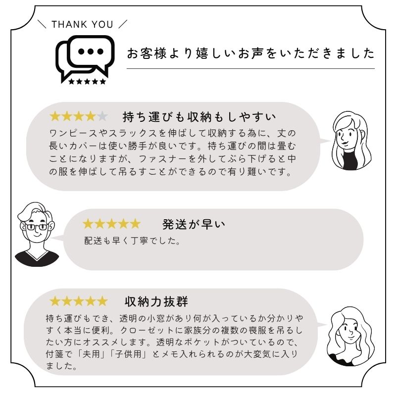 ◆スタッフより スーツや礼服など洋服の収納に便利な衣類カバーです。 大切なスーツやモーニングコート、洋服を入れておけるロングタイプです。 折りたたんでファスナーでとめればコンパクトに。 付属ハンガーの先は収納でき、持ち運び時に便利な取っ手になっています。 カバーの裾部分は開いているタイプなので、長さのある衣類を入れて ほこりよけのカバーとしても使用できます。 ブラックなので女性に限らず、男性の方はスーツもOK! ※生地の性質上、ハンガーとの収納圧力等の外部刺激により、多少のスレが生じる場合がございます 全て新品商品でございます。 生地の性質をご理解頂きまして、ご使用に影響のない場合も、返品交換はご遠慮下さいませ。 ◆素材 ビニール ◆サイズ 約58cm×約120cm ※商品により多少前後します。 ◆メール便について 入りません ◆配送方法・送料等について お買い物ガイド(配送方法・送料等)を必ずご確認下さい。 ◆お買い物ガイドについて ご注文前に、お買い物ガイドをご一読下さい。 ◆ラッピング包装について 詳しくは、こちらをご一読下さい。 ◆お取り寄せ表示について メーカーお取り寄せ時に、メーカー商品売切れの場合も稀にございます。その際は当店よりご連絡致します。 ◆オプション追加について オプション追加ご希望の際には、ご注文ボタン上のプルダウンより選択ください。 ご注文後金額訂正しメールにてご連絡いたします。 ◆在庫について 当店では、同じ商品を多店舗で販売しております。 在庫連動システムを使用して在庫管理を行っておりますが、在庫連動には時差がございます。 稀にご注文が重なった場合は、ご注文順とさせて頂きます。 その場合は、在庫切れの場合もあります。その際は当店よりご連絡致します。 ご了承の上、ご注文下さいますようにお願い致します。 ◆画像について ※商品の写真は、可能な限り実物に近い色、風合いを表現できるように調節してありますが、モニターの設定等によって多少誤差が生じる事がございます。あらかじめご了承下さい。 ※裁断方法により柄の出方が異なる場合がございます。 ▲楽天グローバルエクスプレス登録は、こちらからどうぞ▲ <検索用関連キーワード> 洋服カバー 衣類カバー 喪服 保管 喪服保管 礼服 礼装 お葬儀 持ち運び可能 ファスナー付 安心 旅行 出張 クローゼット 衣類収納 スーツカバー スーツ収納 スーツバッグ バッグ 収納便利 ドレス収納 着物収納 小窓付き 女性用 レディース用 婦人用 男性用 メンズ用 紳士用 ブライダル 結婚式 パーティー 花嫁 新郎新婦 洋装 演奏会 舞台衣装 発表会 スーツ トラベルグッズ 旅行グッズ白ドレス カラードレス 装飾小物