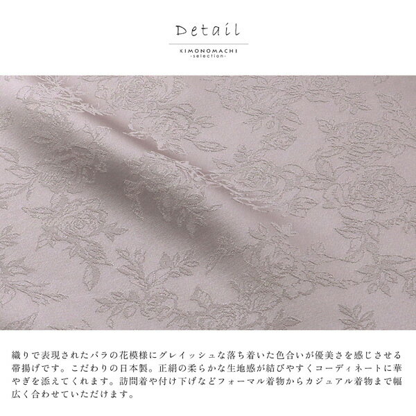 よく一緒に購入されている商品足袋 白 白足袋 4枚こはぜ 4枚コハゼ 足袋845円帯揚げ 正絹 単品帯揚 帯あげ おびあげ 和装5,500円ラミエール 帯締め 帯揚げ セット No.146,490円※メール便ご希望のお客様※メール便は代引不可・日時指定不可です。ご注文の前に必ず「メール便について」をお読みください。織りで表現されたバラの花模様にグレイッシュな落ち着いた色合いが優美さを感じさせる帯揚げです。こだわりの日本製。正絹の柔らかな生地感が結びつくコーディネートに華やぎを添えてくれます。振袖や訪問着、付け下げなどフォーマル着物からカジュアル着物まで幅広く合わせていただけます。【商品内容】帯揚げ1点【色柄】織りで表現されたバラの花模様。色はわずかに紫色みを帯びたグレー。【サイズ】全長:約180cm/幅:約31.5cm【品質】絹100%日本製成人式などの振袖に。訪問着や付け下げなどフォーマル着物から小紋など普段のお着物まで幅広く合わせていただけます。※ご覧いただいております環境によって、色みが若干異なって見える場合がございます。 ※商品によって、サイズが若干前後する場合がございます。 ※生地の裁断によって、柄の出方が多少異なる場合がございます。◇色柄違いございます◇ 類似商品はこちら帯揚げ 正絹 単品帯揚 帯あげ おびあげ 和装5,500円帯揚げ 正絹 単品帯揚 帯あげ おびあげ 和装5,500円帯揚げ 正絹 単品帯揚 帯あげ おびあげ 和装5,500円帯揚げ 正絹 単品帯揚 帯あげ おびあげ 和装5,500円帯揚げ 正絹 単品帯揚 帯あげ おびあげ 和装5,500円帯揚げ 振袖 成人式 単品日本製 帯揚 帯あげ4,950円帯揚げ 振袖 成人式 ベロア 単品帯揚 帯あげ7,480円帯揚げ 振袖 成人式 ベロア 単品帯揚 帯あげ7,480円帯揚げ 振袖 成人式 レース 単品日本製 帯揚7,084円新着商品はこちら2026/2/14礼装向け 袋帯 単品 お仕立て上がり全通柄 日22,330円2026/2/14礼装向け 袋帯 単品 お仕立て上がり全通柄 日22,330円2026/2/14先生袴 セット 4点セット卒業式 女性 レディ67,050円再販商品はこちら2026/2/16甚平 メンズ おしゃれ 男性 プレゼント 涼3,960円2026/2/16甚平 メンズ おしゃれ 涼やか 綿麻甚平 上5,225円2026/2/14あづま姿 衿芯 綸子 日本製 フォーマル向け 605円2026/02/16 更新