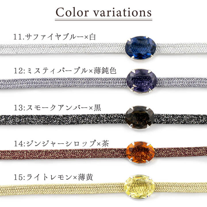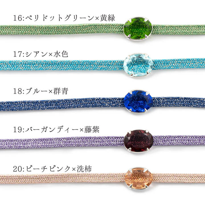 帯締め 帯留め 2点セット 「サファイヤブルー ミスティパープル スモークアンバー ジンジャーシロップ ライトレモン ペリドットグリーン シアン ブルー バーガンディー ピーチピンク」 カラーガラス爪どめ 二分紐 ラメ 帯〆 おびじめ おびどめ 着物や浴衣に 【メール便不可】