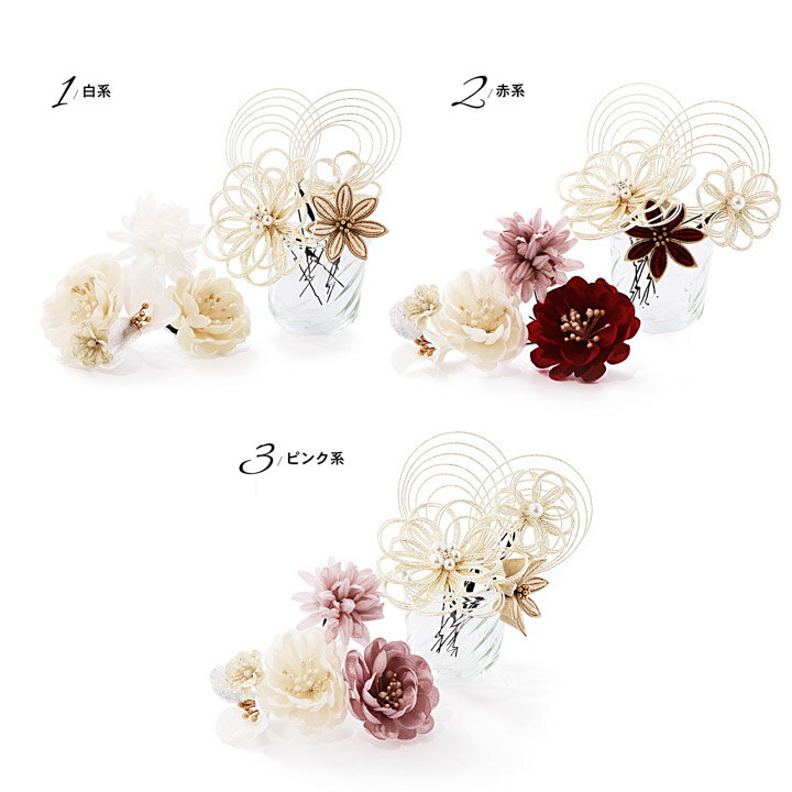 成人式の振袖や卒業式の袴にぴったりのかわいくて豪華な髪飾りです。【商品内容】髪飾り7点【色柄】 1.白系:ベージュとゴールドの剣つまみのお花1点。白金の水引にパールビーズのお花大1点、小1点。白のマム1点。淡いベージュの花びらにラメのペップのカメリア1点。淡いベージュ系のカメリアと小花1点。白金の水引の輪飾り1点。 2.赤系:深い赤とゴールドの剣つまみのお花1点。白金の水引にパールビーズのお花大1点、小1点。くすみピンクのマム1点。深い赤の花びらにラメのペップのカメリア1点。淡いベージュ系のカメリアと小花1点。白金の水引の輪飾り1点。 3.ピンク系:アイボリーとゴールドの剣つまみのお花1点。白金の水引にパールビーズのお花大1点、小1点。くすみピンクのマム1点。グレイッシュなピンクの花びらにラメのペップのカメリア1点。オフホワイトのカメリアと小花1点。白金の水引の輪飾り1点。【サイズ】Uピンお花髪飾り:約8cm、約8.5cm、約10cm 水引タイプ髪飾り:約11.5cm、約9.5cm【品質】レーヨン、紙日本製成人式や結婚式・披露宴の振袖に合わせて。卒業式の袴姿にも。前撮りや後撮りなどの写真撮影にもおすすめ。※ご覧いただいている環境によって、色みが若干異なって見える場合がございます。 ※商品によって、配置やサイズが若干前後する場合がございます。 ※商品加工の過程上、小さなキズや糊跡等が致し方なく見える場合がございます。何卒、ご了承くださいませ。◇髪飾り他にも色々◇ 類似商品はこちら成人式 髪飾り 卒業式 Uピンの7点セット日本9,163円成人式 髪飾り 卒業式 Uピンの5点セット日本8,695円成人式 髪飾り 卒業式 コームとUピンの3点セ8,695円成人式 髪飾り 卒業式 Uピンの6点セット日本8,695円成人式 髪飾り 卒業式 Uピンの3点セット日本5,890円成人式 髪飾り 卒業式 Uピンの8点セット日本9,163円成人式 髪飾り 卒業式 コームとUピンの3点セ8,695円成人式 髪飾り 卒業式 Uピンの3点セット日本3,553円成人式 髪飾り 卒業式 コームとUピンの2点セ11,220円新着商品はこちら2026/2/18振袖 袋帯 単品 お仕立て上がり六通柄 日本製19,686円2026/2/14礼装向け 袋帯 単品 お仕立て上がり全通柄 日22,330円2026/2/14礼装向け 袋帯 単品 お仕立て上がり全通柄 日22,330円再販商品はこちら2026/2/20甚平 メンズ おしゃれ 男性 プレゼント 涼3,960円2026/2/20甚平 メンズ おしゃれ 涼やか 綿麻甚平 上5,225円2026/2/20男性 羽織紐羽織カン付き 紳士羽織紐 正絹羽織6,050円2026/02/20 更新