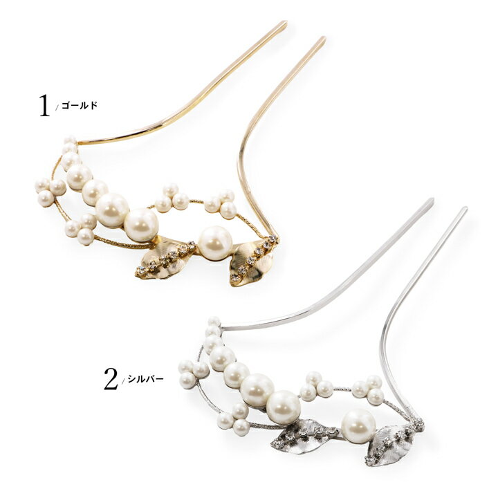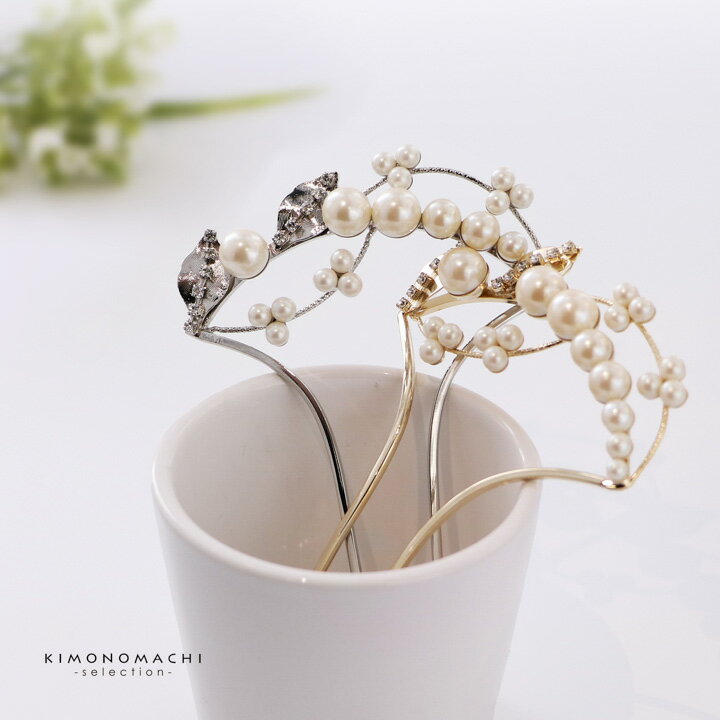髪飾り かんざし 単品「パール、小枝 ゴールド・シルバー」日本製 簪 日本髪 和装 着物 礼装 結婚式【メール便不可】