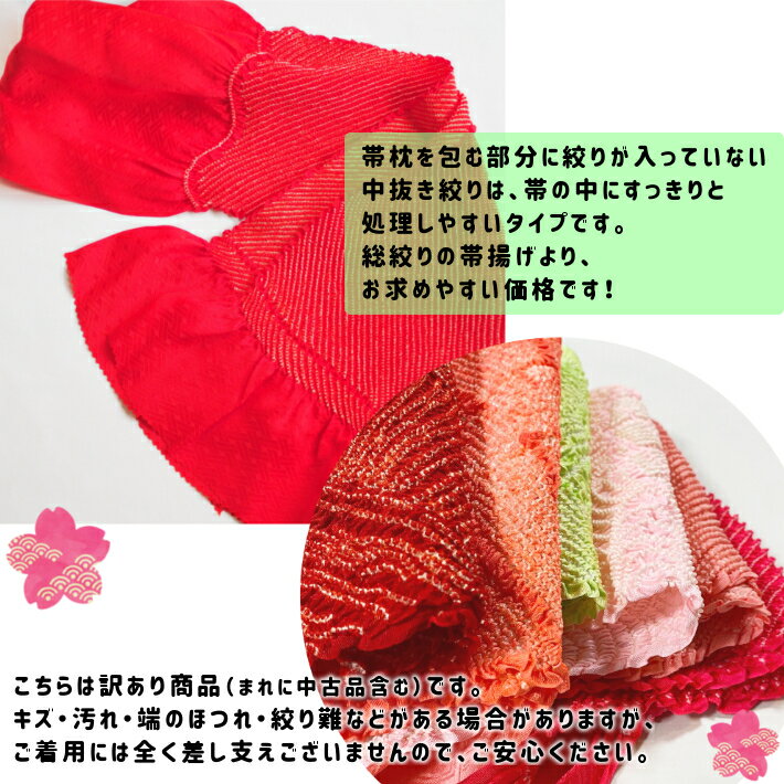 【訳あり/中古】正絹 帯揚げ 中抜き絞り 振袖用 成人式 結婚式 朱赤 ピンク ショッキングピンク 黄緑 オレンジ 黄色 訪問着 アウトレット 単品 着付け練習 メール便送料無料 oa015