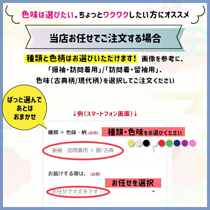 帯をお気に召していただけましたら・・・ 小物(帯揚げ・帯締めなど)のご提案も可能です!まだ揃えていないアイテムがある…、何を合わせたらいいかわからない…などなど、是非ご相談ください♪ ↓↓↓同梱オススメ↓↓↓ 商品説明 内容 正絹仕立て上がり袋帯 一本★振袖・訪問着用★訪問着・留袖用 ランク 【S〜Aランク】 レンタルで使用したものです。多少のシミ、キズ、スレ、などがありますが、目立つものではなく、ご着用には問題のない範囲です。レンタル使用時の管理番号などが貼ってある場合がありますが、目立つ場所ではありません。中古商品にご理解をお願いいたします。 合わせる着物振袖・訪問着・附下・小紋訪問着・黒留袖・色留袖 注意事項 商品写真は出来るだけ実物に近いよう撮影していますが、ご使用のパソコンモニター、照明等により若干異なって見える場合もございます。 注意事項2 ※イメージと異なった等の理由で返品・交換は出来かねます。※中古商品にご理解いただきますようお願いいたします。【中古品大特価】のため、返品・交換は出来ません。気になる内容がございましたら、ご注文前にお問合せフォームをご活用ください。 再入荷のお知らせ登録について こちらの商品はレンタル落ちなどで不定期で出ます。 気になる種類がありましたら「再入荷のお知らせ」をご登録を行いますと、通知が送信されますので是非ご利用ください☆ただし、再入荷をお約束するものではございません。◆◇◆◇◆◇ POINT ◇◆◇◆◇◆ ★お値打ち価格の大特価★ レンタルで使用した中古品ですが、まだまだご使用いただける綺麗な状態です。 成人式や結婚式、街着、着付けの練習に♪中古の帯は柔らかく、結びやすいものが多いです♪ 成人式にママ振袖を着るけど、帯を変えてコーディネートを楽しみたい!などなど、帯や小物を変えるだけで、全体の雰囲気も変わるものです。 また、リメイク材料としても人気です。バッグやポーチ、テーブルセンター、タペストリーなど… アイディア次第でインテリアや小物が豪華な和の雰囲気になりますね。 ★ご注文方法★ ご注文は【当店お任せ注文】か【画像を確認して注文】の二通りございます。 【当店お任せ注文】 練習用の帯をお探しの方、何が届くかワクワクしたい方、お急ぎの方にオススメ!種類と色柄はお選びいただけます。 画像を参考に、「振袖・訪問着用」or「訪問着・留袖用」、色味(古典柄/現代柄)を選択ください。 ※画像は一例です。表記の色は主な色味です。 【画像を確認して注文】 ご注文前に「お問合せフォーム」からご相談ください!お問い合わせフォームは画像の送受信が可能です。まずは、お着物の画像を送っていただくことが一番と存じます。是非ご利用ください!! 【ご提案させていただく帯は、最多3枚までとなります】 お求め安い金額を設定している都合上、ご提案させていただく帯は【多くて3枚まで】となります。ベストな3枚をお選びいたしますので、まずはお着物の画像を添えて、具体的なご希望をご連絡ください。 例えば… ・成人式で、このママ振に合う可愛い雰囲気の帯が希望です!・七五三の母親(40代前半)で、この訪問着に合う落ち着いた帯!・50代後半です。この着物に合うゴールド系がいいです、あとはお任せします!・練習用に柔らかめの帯がいいです!色柄はこだわりません!・バッグにリメイクします!現代風でシンプルな柄ありますか? などなど…特に希望がない、ある程度お任せいただける場合は、その旨をお知らせください。お問合せいただきましたら、当店よりセレクトした帯の画像をお送りいたします。画像の用意にお時間を頂戴いたしますので、しばらくお待ちくださいませ。画像をご確認いただき、どれにされるかご返信・ご注文をお願いいたします! お着物に合う帯をしっかりお選びいたします! 実店舗は創業100年以上の歴史、お祝い事のお手伝いをさせていただいております ご購入を前向きにお考えのお客様を対象としております お気に召してからのご注文で問題ございません!ただし、下記のような例はご遠慮ください。 ×全部見たいです ×長期お取り置き ×問い合わせのみでその後ご連絡がいただけない 【帯は全て一点ずつの在庫です】 ご紹介する帯は全て【一枚ずつの在庫】となります。 他のお客様のご要望と重複した場合は、同じ帯を紹介することもございます。 また、お任せ注文が複数入るとご紹介した帯が無くなる可能性もございますので、可能な限りお早めのご検討をお願いいたします。