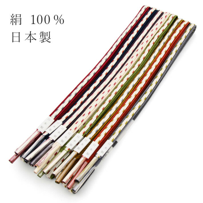 帯締め 平組 正絹 日本製 帯〆 帯じめ 全8色 おしゃれ レッド ネイビー ピンク グリーン グレー カラシ obijime-00002