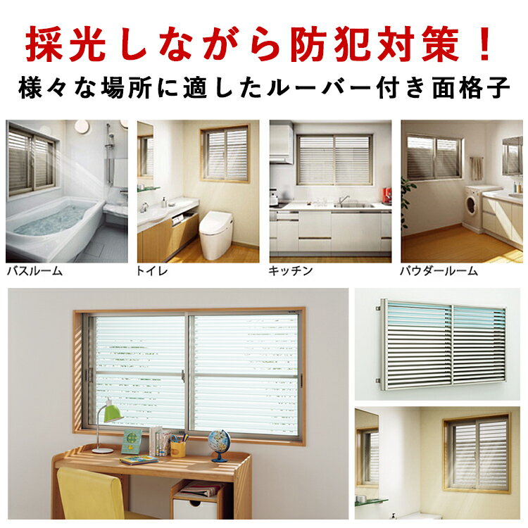YKK 面格子 多機能ルーバー 【ブラケット・仕様・パーツを、選択項目でご指定下さい】 面格子(めんごうし)は、窓からの侵入を防ぐ「防犯」や プライバシー保護の「目隠し」のために窓の外側に設置される部材です。 一戸建てではキッチンやトイレ、浴室といった水まわりやクローゼットの窓など 死角になりやすい位置に多く設置されています。 新築の際にサッシに取り付けるだけでなく 暮らしの中で外部環境の変化などから必要性を感じて、 後からリフォームで壁面に取り付ける場合もあります。 DIYで後付けする場合もブラケット同時購入可能で安心です。 雨戸がなくて不安。シャッターまでは手が出ない。という方にも好評です。 暴風で物が飛来してもある程度は防げ、防災にも。 多機能ルーバーは、外からの視線が気になる場所に最適!! 目隠し、遮光、採光、通風(換気)の4つの機能を兼ね揃えます。 直射日光や外部の視線を遮りながら 換気・採光のコントロールができます。 ■ バスルーム(お風呂) / キッチン(台所) / トイレ(お手洗い) / パウダールーム(脱衣所) など様々な場所に! ※ 細部の仕様は変更になる場合がございます。※取り付ける際は、最低でもサッシW+50mm・サッシH+30mmが必要となります。 YKK多機能ルーバー規定サイズW1000未満/中骨なし(mm) 横 縦 600 800 1000 1200 780 ● ● ● ● 830 ● ● ● ● 870 ● ● ● ー 895 ● ● ● ー 920 ● ● ● ー YKK多機能ルーバー規定サイズW1000以上/中骨あり(mm) 横 縦 600 800 1000 1200 1400 1600 1235 ー ● ● ● ● ー 1285 ● ● ● ● ● ー 1370 ー ー ● ー ー ー 1420 ー ● ● ー ー ー 1590 ー ー ● ー ー ー 1690 ー ● ● ● ー ー 1740 ● ● ● ● ● ● 1850 ● ● ● ● ー ー 1870 ー ー ● ● ー ー 1895 ー ● ● ● ー ー 1920 ● ● ● ● ー ー 1950 ● ● ● ● ー ー ●をクリックで各販売ページに移動できます。