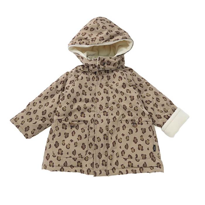 見ているだけでわくわくする、オシャレの主役になるコート☆スタッフ人気の高いアイテムです☆少し広がったシルエットや袖口の折り返し異素材もおしゃれです。蓄熱機能綿の使用や、撥水加工、フードの取り外しなど機能面も満載なのがうれしい☆ ■カラー展開:ブラウン/グリーン ※お名前タグ付き ※前にポケットがあります。 モデル身長:111cm / 着用サイズ:110size モデル身長:91cm / 着用サイズ:90size/グリーン ※この商品は生地に撥水加工(はっ水加工)を施しています。繰り返し洗濯するとはっ水効果が低下します。また、雨天時の長時間の使用は縫い目及び布部分より、中へ水が入る場合がありますのでご注意ください。 ※画面上の色はブラウザや設定により、実物とは異なる場合がございます。ご了承の上ご注文下さい。 アイテム:コート サイズ:90/100/110/120/130/140 素材:表地/ポリエステル100% フリース部分/綿69%・ポリエステル31% 裏地・中綿/ポリエステル100% タフタ×マイクロフリース ■商品サイズ(商品の仕上がり寸法です) 表示(cm)90100110120130140 着丈444953586368 身幅384042444649 袖丈404549545862 フード幅232425252627 フード丈283031323334 メーカー希望小売価格はメーカーサイトに基づいて掲載しています。 男の子,男児,通園,通学,遠足,旅行,冬,おそろい,姉妹,孫,プレゼント,あったかい,ギフト,お祝い,ヒョウ柄,動物,迷彩,撥水,アウター,防寒,冬物