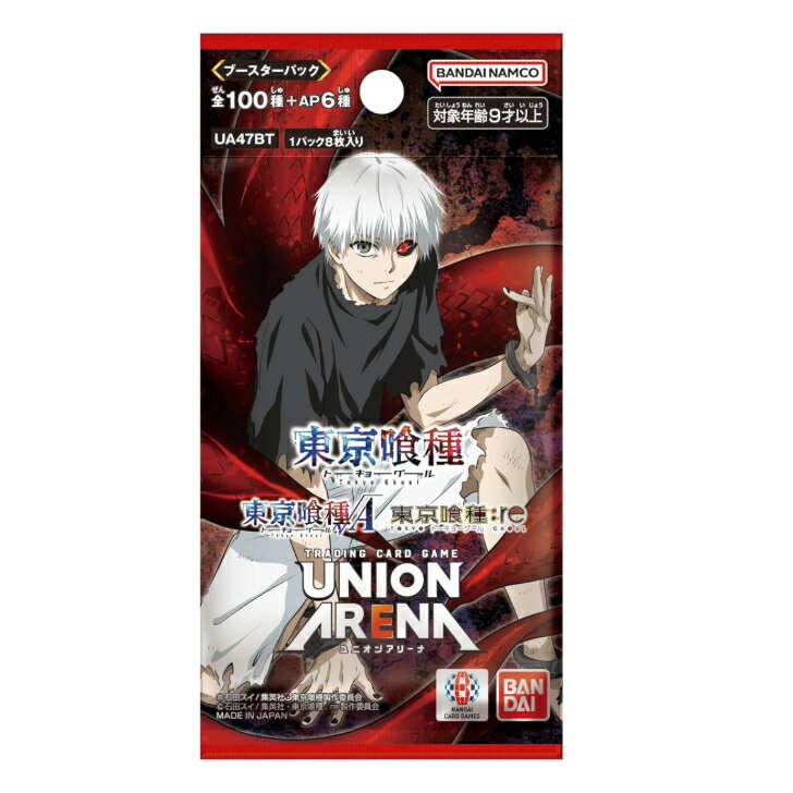 UNION ARENA ブースターパック 「東京喰種トーキョーグール」シリーズ【UA47BT】 (BOX)16パック入り ユニオンアリーナ ボックス 新品 未開封品 トレカ トレーディングカード ブースターパック 1BOX 16パック入り2025年12月19日(金)発売。入荷次第迅速に発送いたします。UNION ARENAに『東京喰種トーキョーグール』シリーズが参戦!『東京喰種トーキョーグール』、『東京喰種トーキョーグール√A』、『東京喰種トーキョーグール:re』のキャラクターを収録!本商品のために描き下ろした、新規イラストを多数収録!*沖縄・離島は発送不可商品です 2