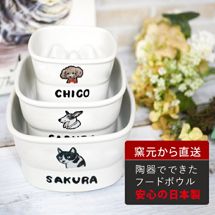 フードボウル 名入れ 手描き 似顔絵 ゆるかわ 早食い防止 高台 【中】 pet122 最速 | フードボール 高さがある 犬 猫 ペット 食器 陶器 日本製 おしゃれ 餌入れ 餌皿 水飲み 給水器 皿 犬用 猫用 小型犬 中型犬 敬老の日 夕立窯
