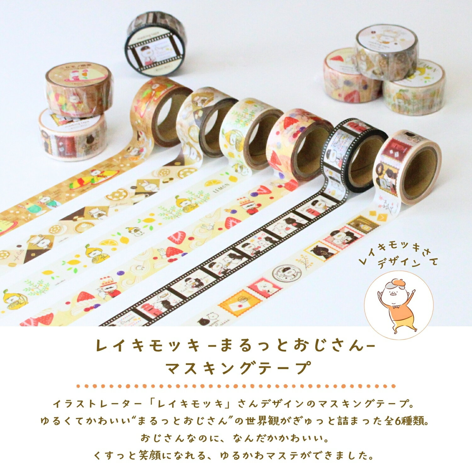レイキモッキ -まるっとおじさん- マスキングテープ 全6種 幅20mm×5mマスキング テープ シール 可愛い かわいい おしゃれ 幅広 太い 手帳 デコ 文具女子博 20mm 5m