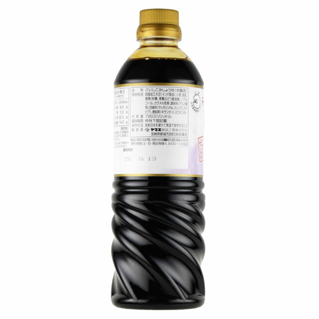 商品詳細 ■商品番号 253863 ■商品種別 本醸造あまくちさしみ しょうゆ ■内容量 720ml ■ ■保存方法 直射日光を避け常温で保存してください。開栓後は出来るだけ冷蔵庫に保存してください。 ■ ■メーカー ヤマエ販売株式会社 ■原材料 脱脂加工大豆(インド製造)、小麦、食塩、糖類(砂糖、果糖ぶどう糖液糖)/アルコール、カラメル色素、調味料(アミノ酸等)、甘味料(サッカリンNa、カンゾウ、ステビア)、増粘剤(キサンタン)、ビタミンB1 コメント 本醸造あまくちさしみは、甘さと香りの強いさしみ醤油でとろみがあり、脂ののった魚にもよく絡みます。 ベースの醤油は二段仕込醤油(再仕込醤油)を使用しています。 甘口の醤油で2段仕込みの醤油を使用している醤油で、製法は本醸造です。 煮炊きに使ったりかけても美味しいです。 だんらん極あまくちよりも粘度が低くなっております。