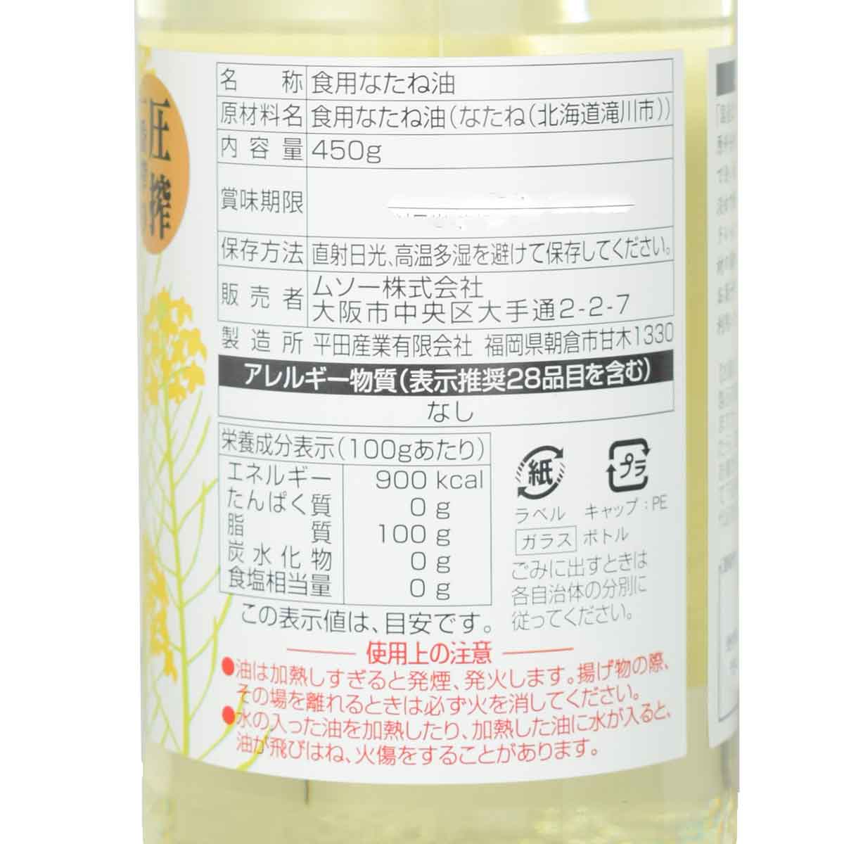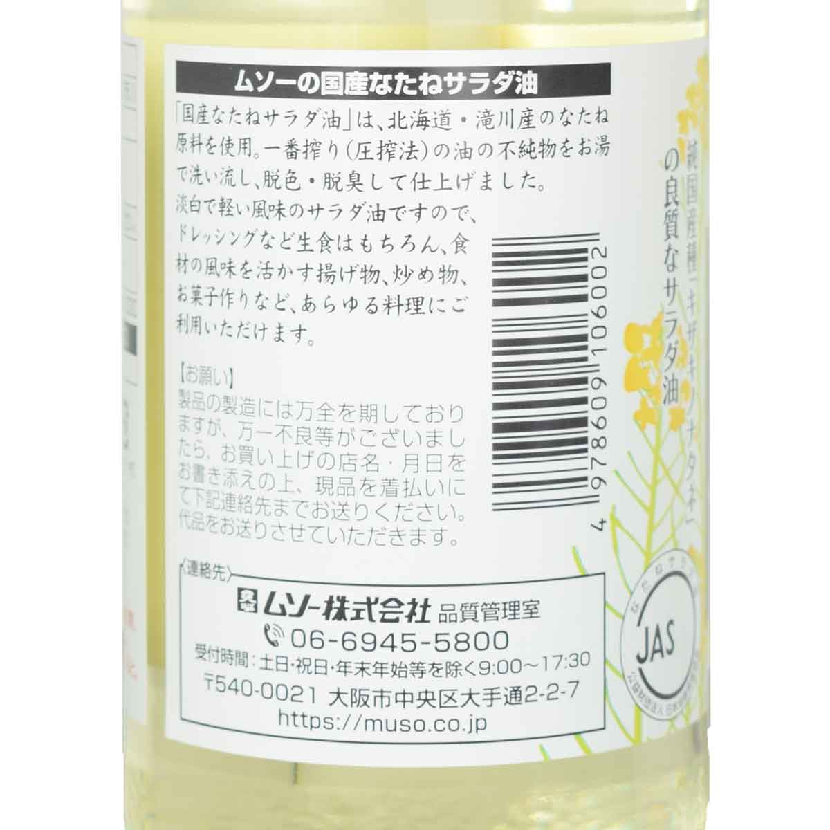 [ムソー] 国産なたねサラダ油 450g 瓶