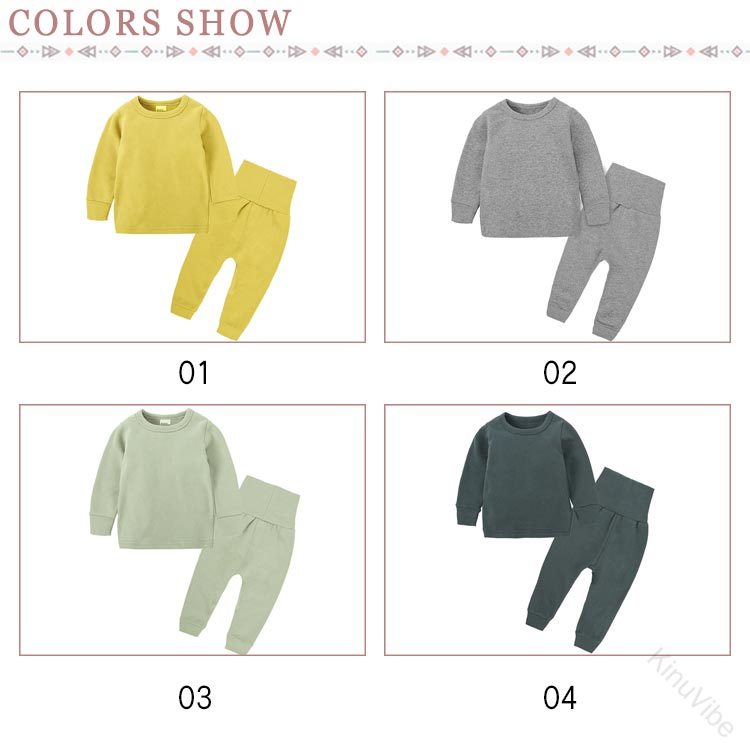 腹巻き上下セット 66-130cm 無地 長袖 キッズパジャマ コットン素材 赤ちゃんナイトウェア 寝巻き 秋冬用 セットアップ ベビー服 お泊り 子供服 保温性抜群 快適着心地 長持ち耐久性あり