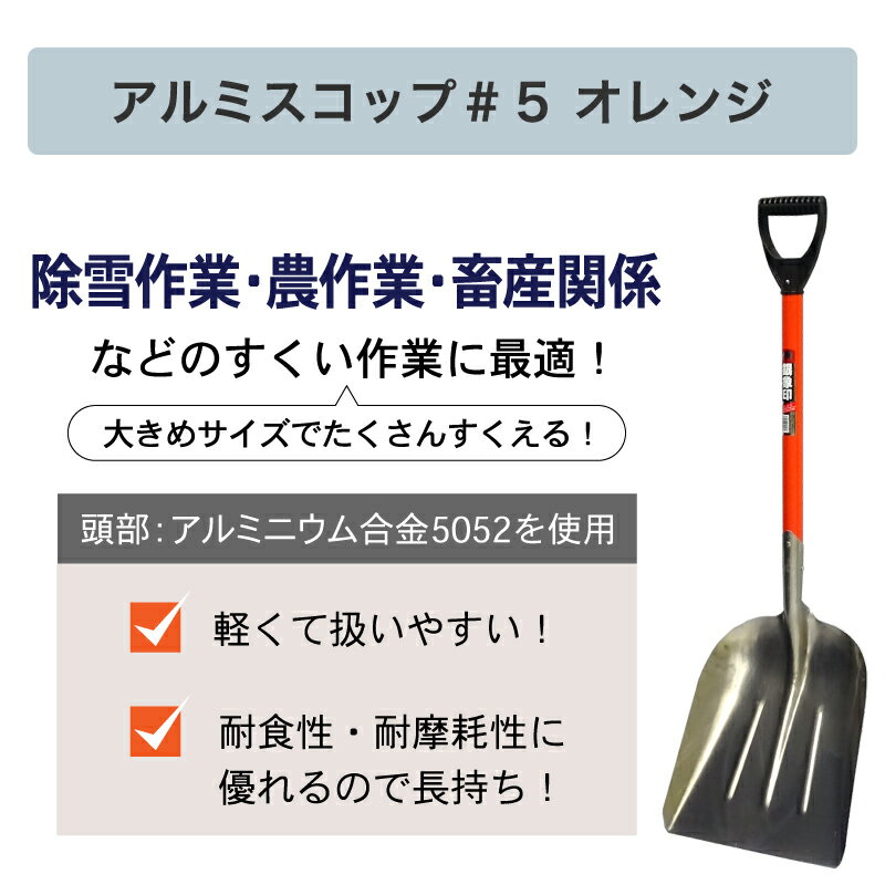 銀象 アルミ スコップ #5 D柄 オレンジ 除雪作業 雪かき 軽い 道具 日本製 軽量 スノーショベル 浅香工業
