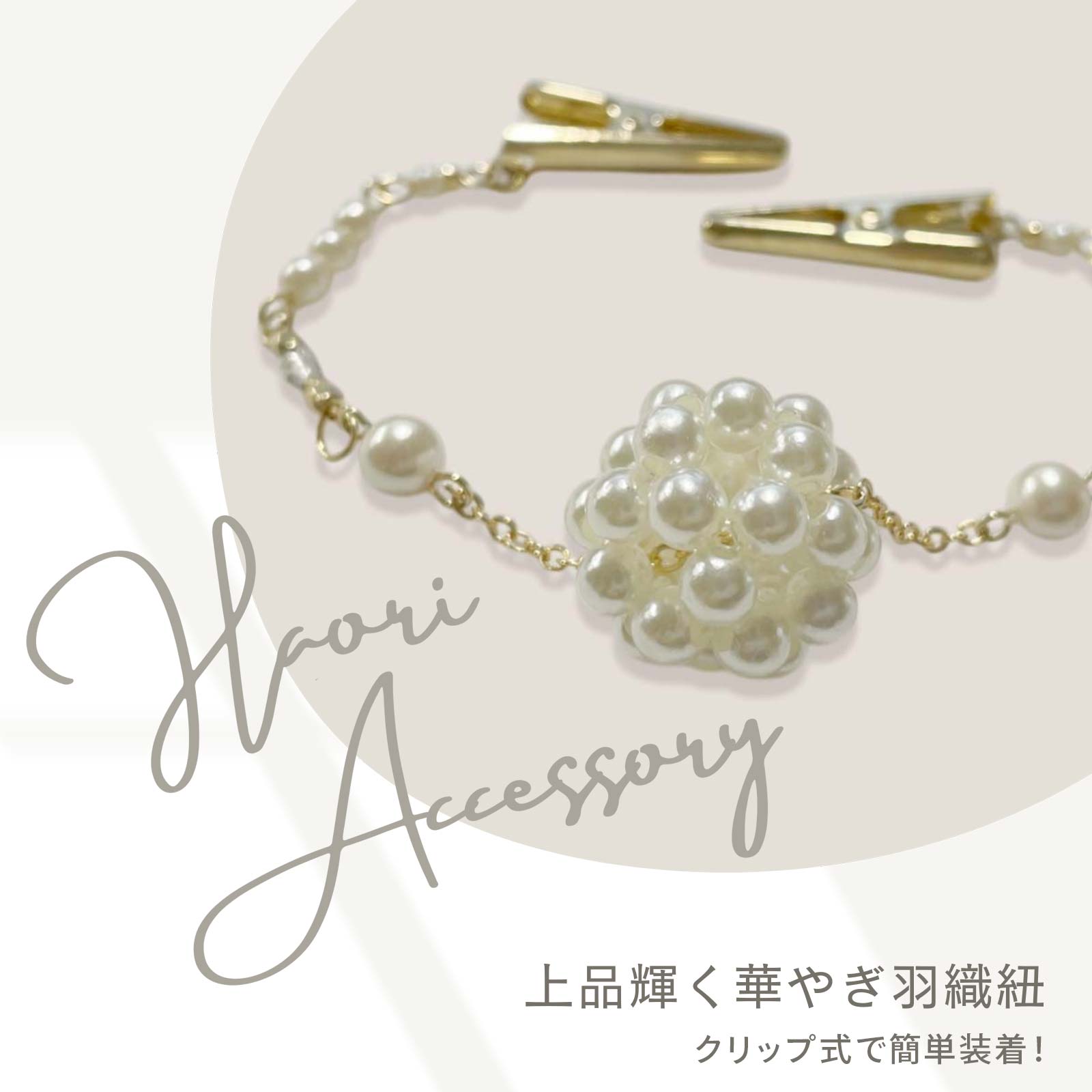 羽織紐 レディース クリップ 通年用 日本製 パール ゴールド シルバー ビーズ オールシーズン 女物 羽織 おしゃれ 超軽量 和装 和服 女性 メール便