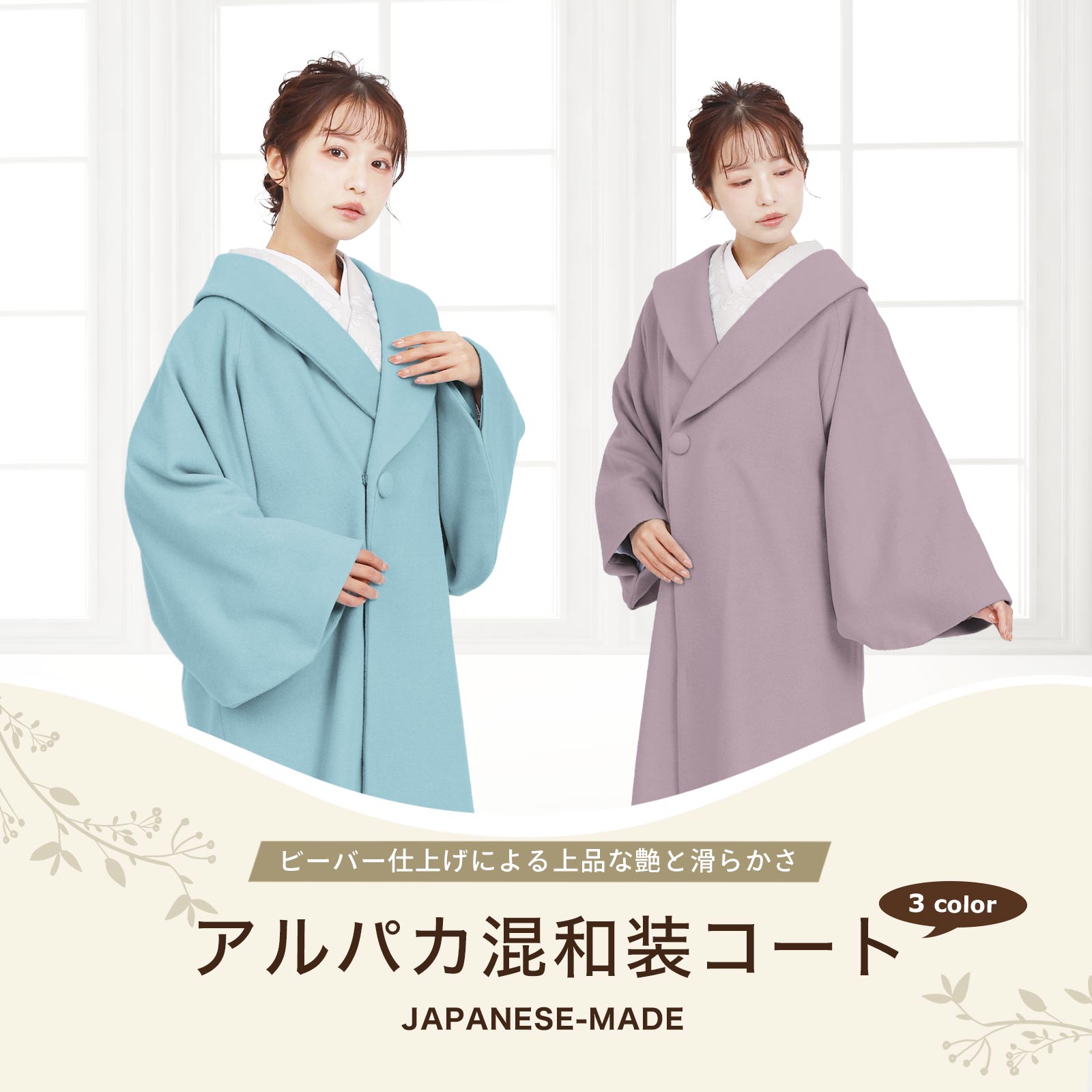 和装コート アルパカ混 へちま衿 着物コート ラグラン袖 レディース ウール コート 日本製 サックス ブルー パープル あったか アウター ビーバー仕上げ 防寒 冬用 軽量 上品 シルエット エレガント 着物用 旅行 お出かけ フォーマル