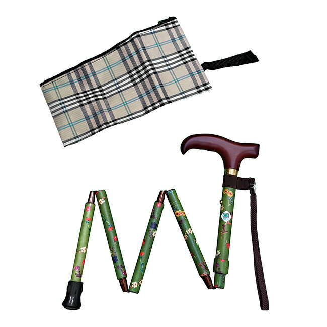天然木グリップ 5段 折りたたみ式 花柄 ステッキ[折りたたみ 杖 軽量 女性 おしゃれ レディース 折り畳み 軽い 歩行 サポート 介護 福祉 高齢者 おばあちゃん お母さん 祖母 つえ かわいい 女性用 介護用品]