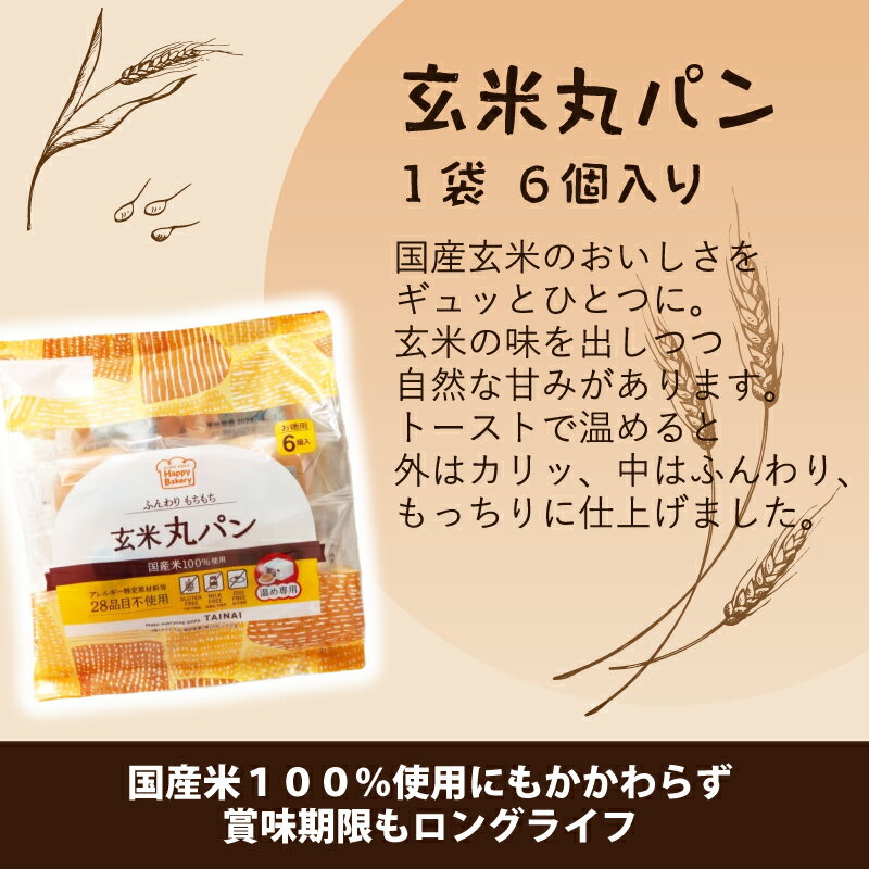 【玄米丸ぱん 18個入り】送料無料 国産 グルテンフリー 6個×3袋 ぱん パン セット国産玄米粉 3袋入 アレルギー特定原材料等28品目不使用 健康 おこめ まる