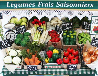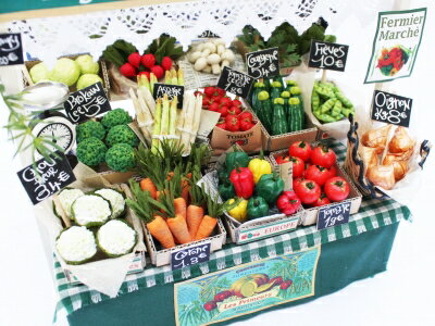 パリのマルシェキット / パリの八百屋さん ミニチュア製作の醍醐味でもある粘土細工をお楽しみいただける新シリーズ、『パリのマルシェキット』です。 本場の雰囲気をそのままに、手作りの野菜をかざりつけてお楽しみください。 完成サイズ:W210×D150×H175 こちらの商品は完成品を掲載しております。 販売しているのはお客様ご自身で製作するキットです。ご確認の上お買い求め下さいませ。 その他のキットはコチラを クリック↓