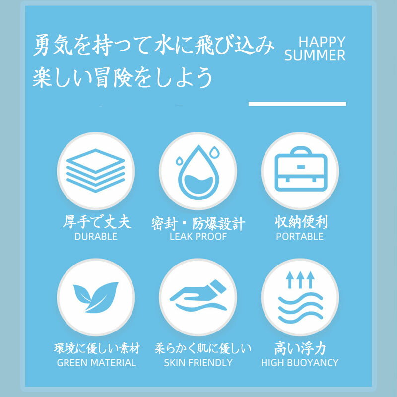 水上ハンモック浮き輪! 思いっきり水遊びを楽しもう!夏のプールや海辺で大活躍の充気式浮き床です。厚手のPVC素材を使用しているため、耐久性が高く、傷や空気漏れに強い設計。3つの独立した気室で高い浮力と安全性を確保し、安定感抜群で横転しにくいのが特徴です。 肌に優しい柔らかい素材で、快適な使い心地。密封性の高い空気口は押すだけで隠せる便利なデザインで、携帯にも便利。鮮やかな4色展開で、お好みのカラーをお選びいただけます。環境に配慮したエコ素材を使用しているため安心してご利用いただけます。 持ち運びや収納も簡単で、バカンスや水上レジャー、プール遊びに最適。暑い夏の日にはこれ一つでリラックスした時間を満喫しましょう! お子さまが遊ぶ際は必ず保護者の目の届く場所でご使用ください。安全に配慮して楽しい水遊びをお楽しみください。 生産ロットにより、サイズや仕様に若干の誤差が生じる場合がございます。 モニターや照明の環境により、実際の商品と色味が異なる場合がございます。予めご了承ください。