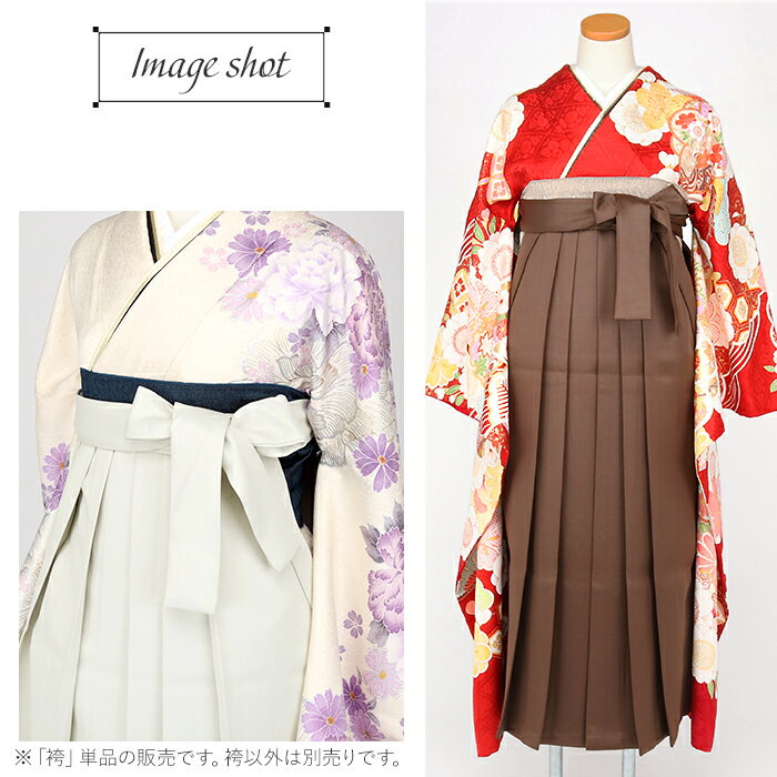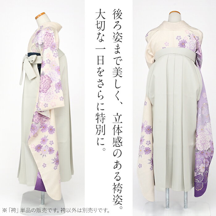 ◆商品情報◆ ■卒業式などのハレの日を彩る、おしゃれなレザー調袴スタイル■ 上品さの中にモダンな雰囲気を添える、レザー調生地の卒業袴。 生地は厚すぎず柔らかさがあり、一般的な袴よりもスタイリッシュな印象です。 落ち着いた色合いが振袖や二尺袖に美しく調和し、古典的なママ振りにも合わせやすく、コーディネートの幅を広げます。 ●素材感:レザー調のニュアンスを取り入れたモダンな生地感 ●風合い:厚すぎず柔らかな着心地で、快適にお召しいただけます ●仕立て:行灯袴(あんどんはかま)仕様。仕切りがないため、振袖など丈の長い着物とも相性が良く、スカート感覚で着用可能 ●お手入れ:正絹と異なり、ご自宅でも扱いやすい上質ポリエステル。汚れを気にせず安心して楽しめます ●安心仕様:後ろ側に伸縮性のあるヘラ付き。袴下帯と背中の間に差し込むことで着崩れを防ぎ、万が一後紐が解けても袴が落ちにくい設計 ●カラー展開:全4色(落ち着きのある定番カラーから、トレンド感あるニュアンスカラーまで) ●サイズ展開:M・L・LLの3サイズをご用意 ●おすすめシーン:卒業式・前撮り・謝恩会など特別な一日に シンプルながらも存在感のあるデザインは、振袖や二尺袖の華やかさを引き立て、よりスタイリッシュな卒業スタイルを演出します。 届いてすぐに使えるお仕立て上がり袴で、大切な一日を上品に彩ってください。 ◆合わせる着物◆ 振袖 二尺袖 ◆こんなシーンに◆ 卒業式 前撮り ロケーションフォト など ◆季節◆ 春 秋 冬 ◆色◆ 【全4色】 ●ブラック 深みのあるシックな黒。どんな着物にも合わせやすく、全体を引き締める万能カラー。 ●モスグレー 落ち着きのあるグレーにほんのりグリーンを含んだニュアンスカラー。大人の洗練を感じさせる一色。 ●ブラウン 温かみと柔らかさを併せ持つブラウン。赤系や暖色系の着物に合わせると、やさしい印象に。 ●ホワイト 上品なくすみ感をまとった柔らかな白。ナチュラルでありながらモダンな雰囲気を演出。 (※ホワイトは明るい色味の為、レザー感よりも生地の質感が際立ちます。) ◆柄◆ 無地(レザー調) ◆サイズ◆ 【Mサイズ】 紐下:91cm (対応身長:153~160cm位) 【Lサイズ】 紐下:95cm (対応身長:160~170cm位) 【LLサイズ】 紐下:99cm (対応身長:170~175cm位) ◆素材◆ ポリエステル100% ◆製造◆ 生地/日本 縫製/中国 ◆備考◆ ※実際の商品と同じ色合いに画像修正をしておりますが、環境やモニターの違いにより多少色の違いが出て来ることがあります、ご了承ください。 ※こちらの商品は「袴」単品です。着物や小物は別売品となります。 ※汗・雨等で濡れた場合、強い摩擦などで色が落ちたり移ったりする場合がございます。 ※製造時期により細部のデザインが若干変更となる場合がございます。 ※製造するうえで十分に注意しておりますが、どうしても小傷や汚れ、染料飛びや染料欠けなどができる場合がございます。予めご了承のうえ、お買い求めください。 ◆配送方法◆ 宅配便 ▼ 袴用の商品はこちら ▼