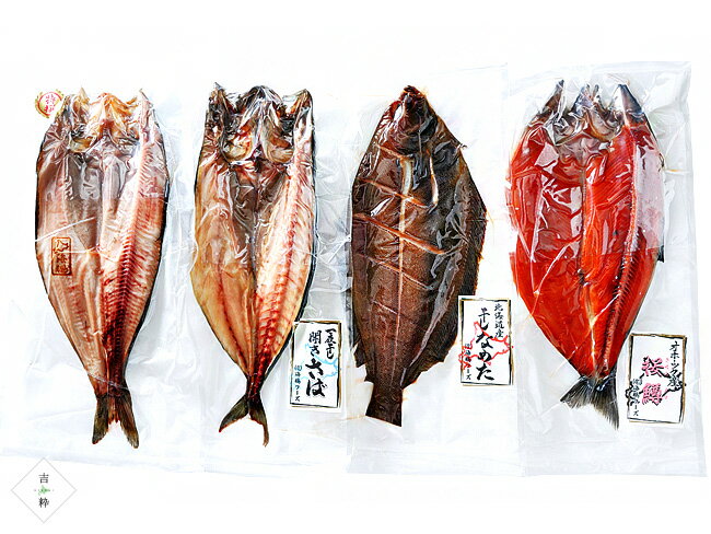 厳選干物 4枚セット【一夜干4点セット 化粧箱無し】オホーツク海 北海道産【北海道産ほっけ開き 網走産開き鯖 オホーツク海産サクラマス なめたかれい】干物 海鮮ギフト【ホッケ 鯖 桜鱒 鰈】贈り物 ギフト【サバ ナメタカレイ サクラマス 】特大サイズ ひもの【送料無料】