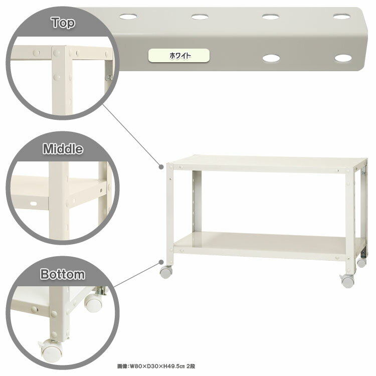 スチールラック スマートラック NSTRK-054幅80×奥行30×高さ48.5cm 2段ホワイト ブラック 亜鉛メッキ 80kg/全スチール棚 スチールラック キャスター付き 収納棚 収納ラック スリム キッチン シェルフ リビング オフィス 防災収納 商品key:[W80][D30][H45]