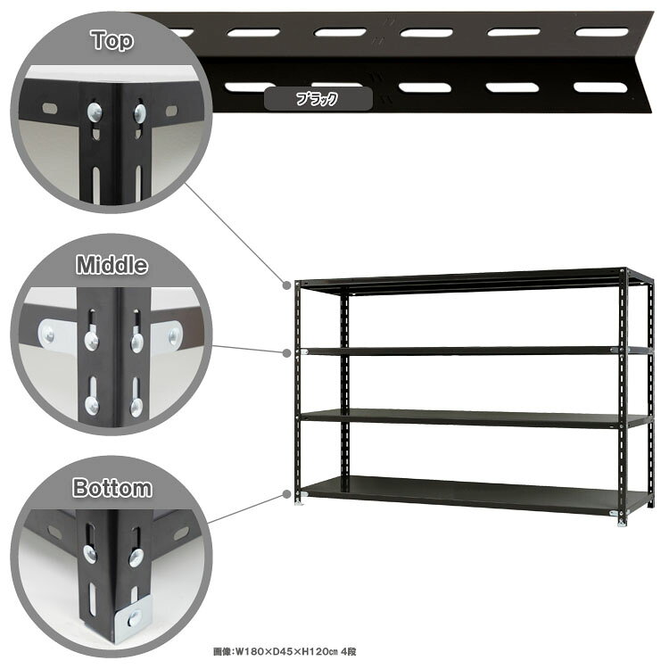 【個人宅も送料無料】 NC-1800-12 幅180×奥行45×高さ120cm 4段 ホワイト・ブラック 70kg/段 【スチール棚楽天最安値に挑戦!】 【スチール棚 スチールラック 業務用 収納棚 収納ラック】 【商品key:[W180][D45][H120]】