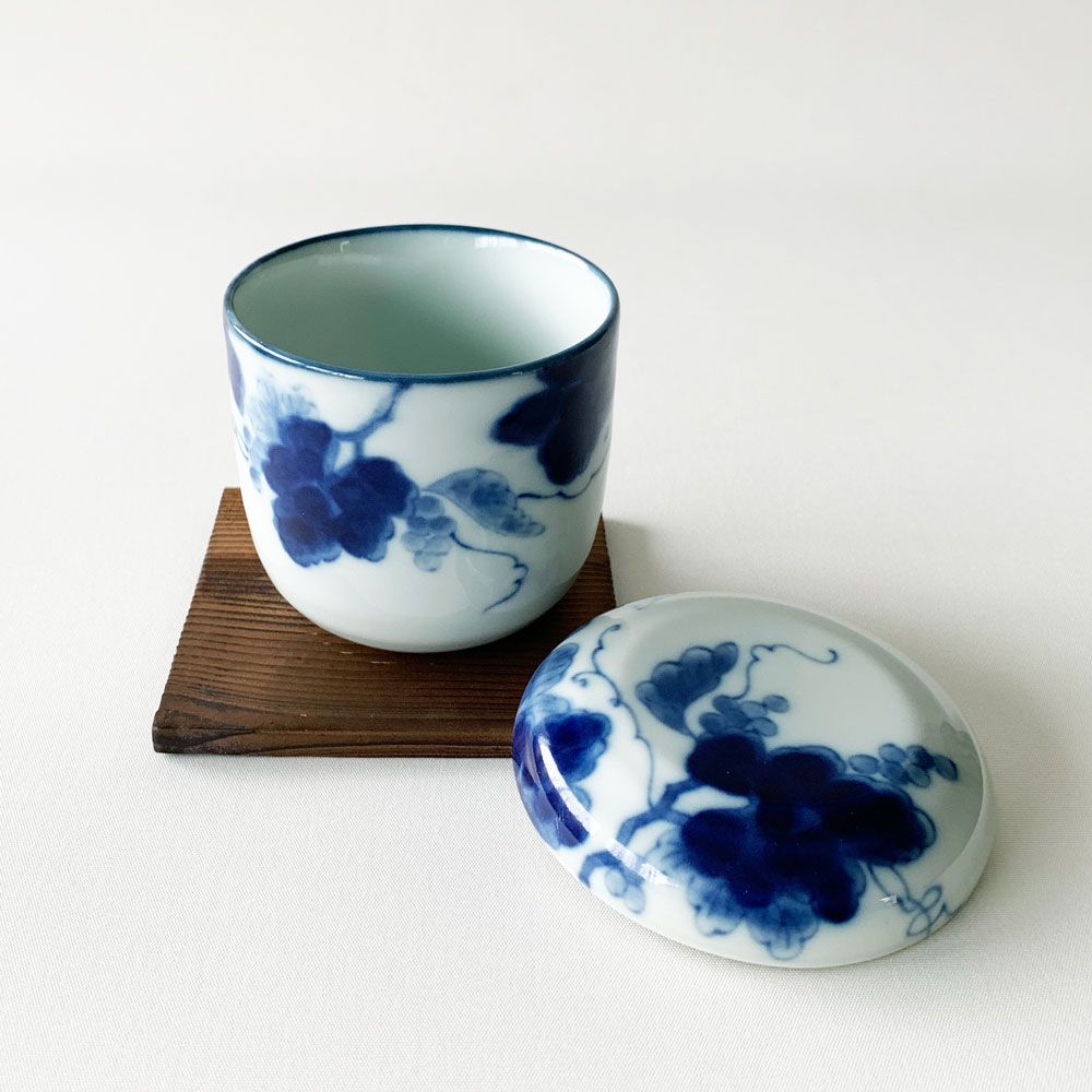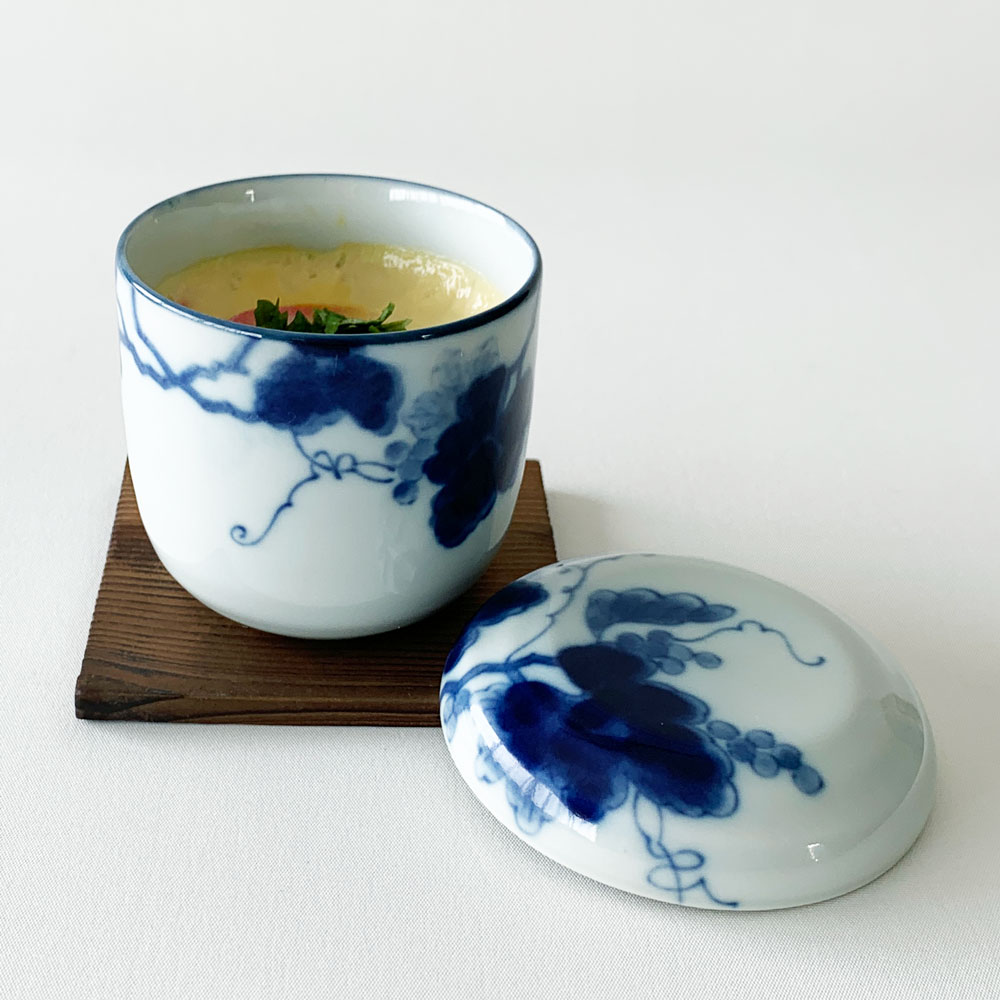 おしゃれ 藍染ぶどう 蒸し碗 蒸し蓋 焼板付 茶碗蒸し デザートカップ 美濃焼 日本製