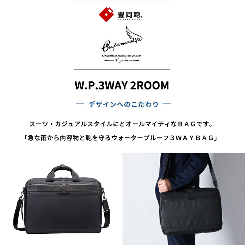 豊岡鞄 ビジネスバッグ メンズ A4 日本製 PU [850731]craftsmanship W.P.3WAY 2ROOM ブリーフ 3way ショルダーベルト付き リュック ショルダー 手提げ トート ビジネスバッグ 通勤 自転車 A4ファイル対応 ブラック 木和田正昭商店