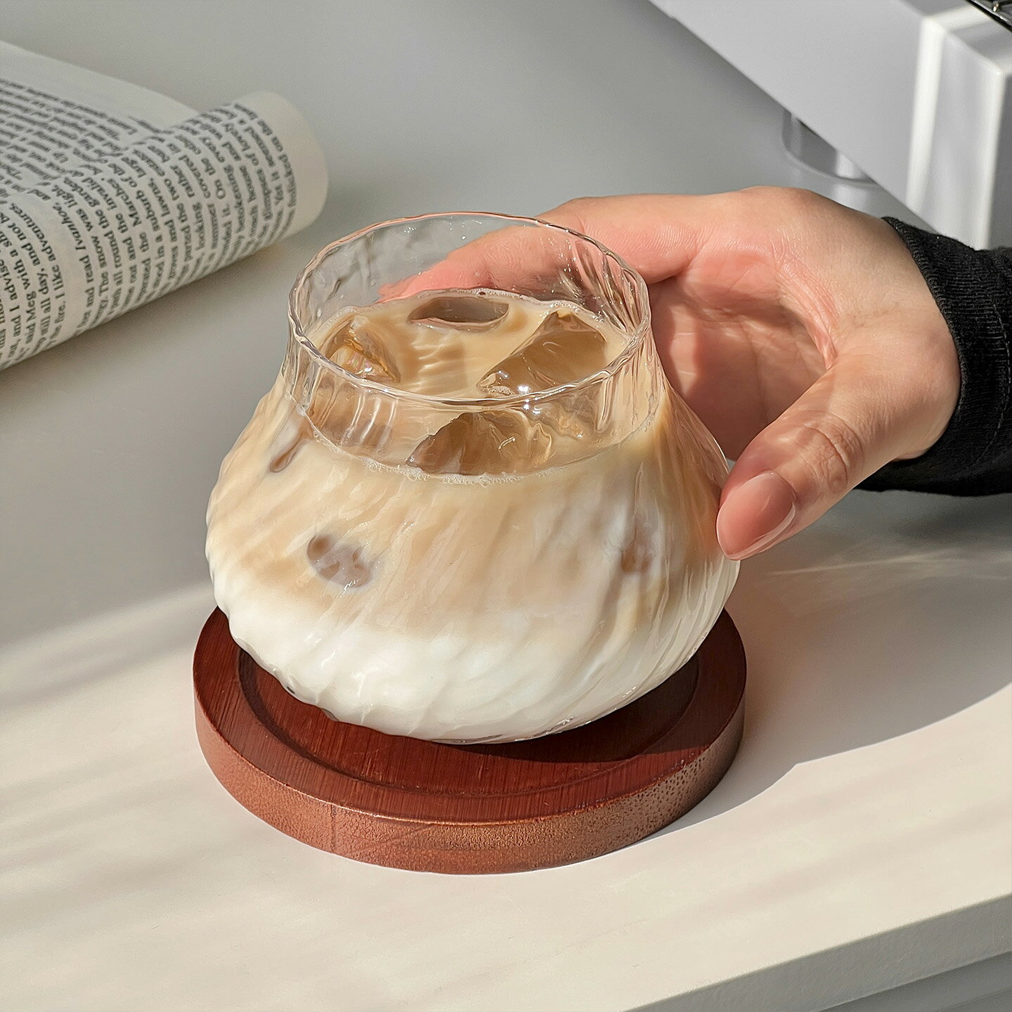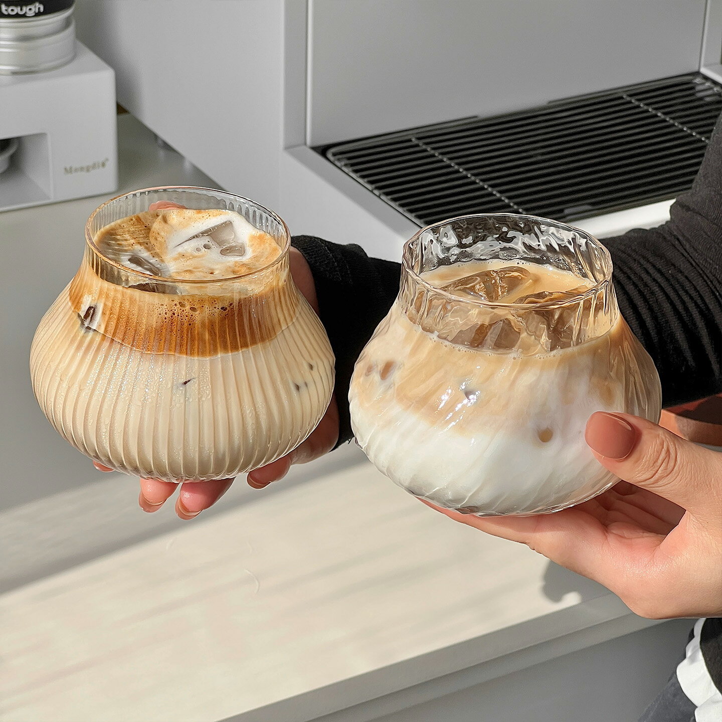 ins風 ぽっちゃり グラス コーヒーカップ デザート パフェグラス ストライプ模様 コンパクト ガラスコップ ティーカップ おしゃれ ウイスキーロックグラス レトロ ミルク カフェラッテ お酒 紅茶 タンブラー 食器 来客 新生活 かわいい ギフト プレゼント Kiyokyou