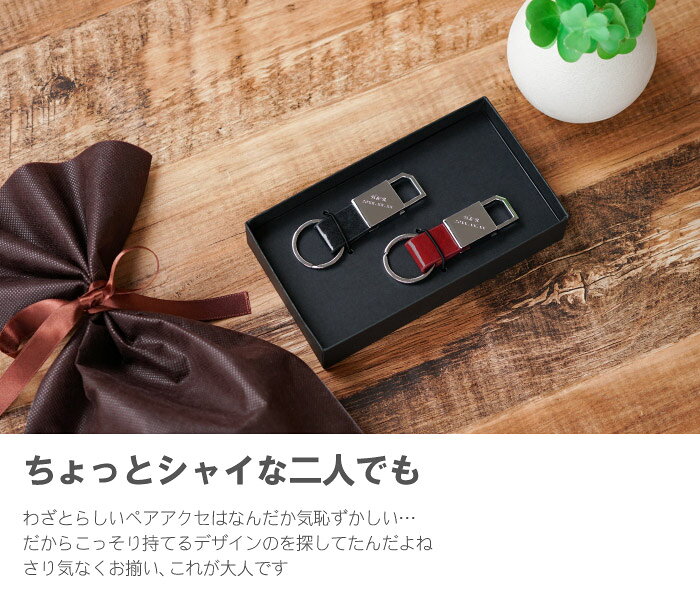 商品情報 【 名入れOK! グロスメタル ペア キーリング 】 大人のためのペアキーリング グロッシーな金具部分に金属彫刻でお名前や記念日の日付を彫刻します 派手すぎず落ち着いたデザインだから、大人 かっこいい カップルにぴったり★ レザー部分はしっかりとした牛本革で上品さをプラスしています 金具部分はなんだか南京錠みたいで 二人で行ったデートスポットを思い出しちゃうな♪ 大切な記念日や彼の名前を刻みこんで消えない思い出にしちゃおう! 名入れ グロスキーリング ペアセットは、 二人の大切な記念日、誕生日のギフトや クリスマス、バレンタイン、結婚記念日の贈り物にもオススメ! 単品を ご希望の方はこちらへ↓↓ グロスメタル キー リング 単品 名前を入れて世界に一つのプレゼント! 仕様 / サイズ ■セット内容:2個 ■サイズ:22×90(mm) ■材 質:牛革/メタル ■ブランド:DEPTH AND DEMAND 配送方法 宅配便/メール便不可 ※ご注文の際、メール便をご希望の場合は【宅配便】へ変更させていただきます。予め、ご了承ください。 彫刻内容 ●文字数 A.ナナメパターン 1行目:8文字まで 2行目:10文字まで B.イニシャルパターン 1行のみ3文字まで 例)ブラック:□□/レッド:□□□ など、それぞれご希望の彫刻内容をご記載ください ※彫刻の内容が1点のみの場合は2点共通の内容でお作りいたします おすすめ! 彫刻可能文字数多めが嬉しい♪ 大人カラーレザーメガネケース 内側に名入れでさりげない◎当店をよくご利用いただくシーン 長寿祝い 還暦 (かんれき) 60歳 / 古希 (こき) 70歳 / 喜寿 (きじゅ) 77歳 傘寿 (さんじゅ) 80歳 / 米寿 (べいじゅ) 88歳 / 卒寿 (そつじゅ) 90歳 白寿 (はくじゅ) 99歳 / 百寿 (ももじゅ) 100歳 / 茶寿 (ちゃじゅ) 108歳 皇寿 (こうじゅ) 111歳 / 大還暦 (だいかんれき) 120歳 結婚記念日 紙婚式 1周年 / 藁婚式 綿婚式 2周年 / 革婚式 3周年 / 花婚式 4周年 木婚式 5周年 / 鉄婚式 6周年 / 銅婚式 7周年 / ゴム婚式 8周年 / 陶器婚式 9周年 錫婚式 アルミ婚式 10周年 / 鋼鉄婚式 11周年 絹婚式 亜麻婚式 12周年 / レース婚式 13周年 / 象牙婚式 14周年 水晶婚式 15周年 / 磁器婚式 20周年 / 銀婚式 25周年 / 真珠婚式 30周年 珊瑚婚式 翡翠婚式 35周年 / ルビ−婚式 40周年 / サファイア婚式 45周年 金婚式 50周年 / エメラルド婚式 55周年 / ダイヤモンド婚式 60周年 プラチナ婚式 75周年 お祝いごと プレゼント / Present / ギフト / Gift / 贈り物 / 贈りもの / 贈物 / 贈呈品 / 贈呈 贈答品 / 贈答 / ラッピング / ギフトセット / セット / 誕生日 / 誕生日プレゼント 出産祝い / 出産内祝い / 内祝い / 結婚 / 結婚式 / 結婚祝い / 結婚内祝い / 結婚記念 引き出物 / 引出物 / 開店祝い / 開店 / 周年記念 / 周年祝い / 地鎮祭 / 成人 成人祝い / 成人式 / 新成人 / 卒業 / 卒業祝い / 入学祝い / 就職祝い / 新入社員 新生活 / 新生活応援 / 初任給 / 記念日 / 記念品 / 昇進 / 転勤 / 送別 / 退官 / 定年 退職 / 送別品 / 勤続 / 永年勤続 / 勤続記念 / 永年表彰 / 祝い 季節のイベント お正月 / 新年会 / バレンタイン / バレンタインデー / バレンタインデイ / Valentine ホワイトデー / ホワイトデイ / whiteday / 母の日 / Mother's Day / 父の日 Father's Day / こどもの日 / 子供の日 / 子どもの日 / 端午の節句 / お中元 / 敬老の日 敬老 / 勤労感謝 / クリスマス / Xmas / Christmas / Chrismas / くりすます 忘年会 / お歳暮 / 増税 / 令和 / 令和元年 / 2019 / 2020 プレゼントのお相手 男性 / メンズ / Men's / めんず / 女性 / レディース / れでぃーす / レディス レデイース / Ladies / 父 / お父さん / おとうさん / 義父 / お義父さん / 義理の父 義理父 / 義理 / パパ / Papa / 母 / お母さん / 母さん / おかあさん / ママ / まま お義母さん / 義理の母 / 義理母 / 義母 / Mama / 子供 / 子ども / こども / キッズ Kids / 男の子 / 女の子 / おじいちゃん / じい / お爺ちゃん / お祖父ちゃん / 祖父 おばあちゃん / ばあ / ちゃん / お婆ちゃん / お祖母ちゃん / 祖母 / 妻 / 夫 / 彼氏 彼女 / 友達 / 上司 / 部下 / 先輩 / 後輩 / 孫 / まご / マゴ / 夫婦 / めおと / 両親 カップル / 10代 / 20代 / 30代 / 40代 / 50代 / 60代 / 70代 / 80代 名入れ表記について お客様ごとに、 名入れ / 名いれ / ないれ / 名前 / 名前入 / 名前入り / 名前入れ / 彫刻 / 刻印 / 文字入れ / ネーム入れ といったように表現が異なりますが、当店では全てを総称して「 名入 れ 」と表記しております。 ※ 名 前 入 り と表記している商品も一部御座います。