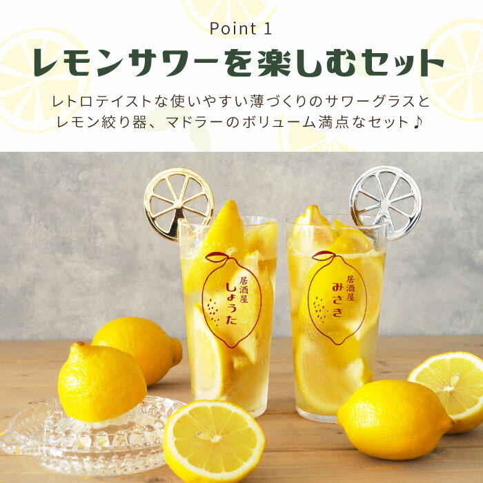 結婚祝い ペア レモンサワー グラス 名入れ 薄口 タンブラー 【 レモン絞り器 & マドラー 付き ペアグラス セット 】 レトロ 雑貨 カップル お揃い 誕生日 プレゼント 女友達 20代 おしゃれ 友人 レモンしぼり かわいい おもしろ 結婚 祝い 記念日 記念品 クリスマス xmas