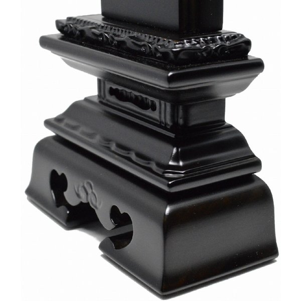 ■■■商品情報■■■ 品名 勝美位牌(黒檀/紫檀) ※位牌本体のみの価格になります。 ※文字入れが必要な方は別料金の弊社『文字の名入れ』商品と合わせてご購入下さいませ。 寸法 4.5寸(※詳しいサイズは寸法表をご参考下さい) 材質 (黒檀/紫檀)よりお選び下さい 備考 位牌本体のみの発送目安:お支払いを確認後、3営業日以内で発送 文字入れしての発送目安:お支払いと文字の確定後、3営業日以内で発送 ■■■商品説明■■■ 札板の頂点の角が丸くかたどってあり、形が『木瓜紋』に似ていることから“子孫繁栄”という良い意味合いがあります。 『勝美型』と呼ばれるカマチ座(足部分)は非常に重厚感があり、お位牌の中でも高級な分類に入ります。 低価格で良いものをという方には一番選ばれているお位牌です。 黒檀・紫檀よりお選び下さい。 一般的に選ばれるのは黒檀が多いです。 ※紫檀に関しましては、採れる時期の木材の環境の変化によって赤みが強く出たりします。 予めご了承下さい。 ■■■仏壇とのサイズ別相性■■■ 2.5寸〜4.5寸・・・・上置き型仏壇(何かの上に置いて供養するタイプのお仏檀) 4.5寸〜7.0寸・・・・直置き型仏壇(直接床やフローリング、畳の上に置くタイプのお仏檀) サイズ高さ(総高)横幅(台巾)奥行3.0寸15.4cm7.5cm3.5cm3.5寸17.5cm9cm4cm4.0寸19.3cm10cm4.5cm4.5寸20.9cm10.5cm4.8cm5.0寸23.7cm11.4cm5.0cm5.5寸25.7cm13cm5.5cm6.0寸27.9cm14.2cm5.9cm※全て手作りのため、上記の寸法に多少の誤差が生じることがあります。 ※黄色マークの寸法が良く出る標準寸法になります。 ※寸法により多少のデザインが異なる場合も御座います。 ※レビュー特典は複数のご注文を頂いた場合でも一度のご注文で一度の特典とさせて頂きます。 ↓↓↓文字入れが必要な方は下記画像をクリック↓↓↓