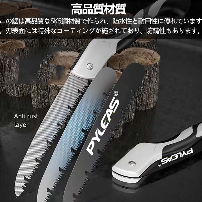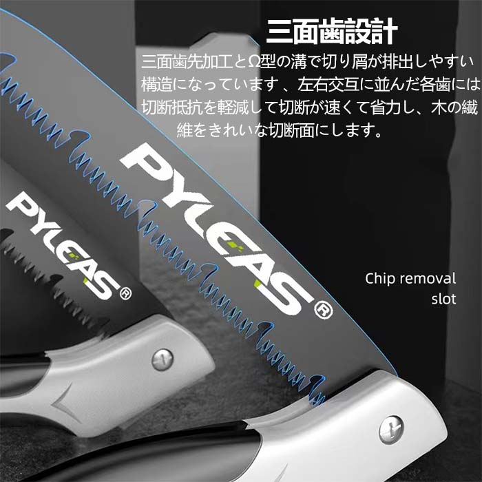 のこぎり 鋸 折りたたみ式 剪定鋸 刃渡り 小型 三面歯先 枝切り鋸 ノコギリ 木工 木工切断 枝切り用 キャンプ 木工用 園芸 枝切り 大工用 庭木 家庭用 ガーデンツール 手袋+工具付き 3サイズ(S M L)