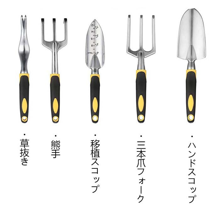 材質:収納バッグ/600Dオックスフォード生地、持ち手/pp➕TPR、金具/アルミ合金 ・熊手:29*7.5cm(180g) ・草抜き:30*4cm(138g) ・ハンドスコップ:30*7.5cm(135g) ・移植スコップ:30*5.5cm(135g) ・三本爪フォーク:29*7.5cm(152g) ・剪定バサミ:19cm(136g) ・手袋1双:140g ・専用収納バッグ:32*20.5*24.5cm ◆日頃のお庭のお手入れから、家庭菜園まで大活躍!ビギナーでも使いやすいガーデニング8点セット。 ◆手のひらにフィットする手頃な大きさのハンドルと、軽量なアルミ合金製で初心者でもお庭仕事が楽ちん。 ◆ハンドスコップ・移植スコップ・レーキ(熊手)・ハンドフォーク・剪定バサミ・草抜き・専用トートバックの7点を取り揃えた7点セット。 ◆ハンドスコップ-適度な幅の標準的なスコップで、プランターへの土の追加や仕上げに最適。 ◆移植スコップ-地面に食い込みのよいシャープなフォルムで、花の苗の植え込みなどに大活躍。地面に差し込んだ深さがひと目でわかる目盛り付き。 ◆レーキ(熊手)-先端が90度に曲がった熊手形状で、落ち葉や雑草をかき集めたり、土壌の表面のならすときに便利なツール。 ◆三本爪フォーク-しっかりと根を張った植物を植え替えるときや、球根を掘り起こすときなど、地面を耕すようにスムーズに掘りたいときに。 ◆剪定バサミ-ハンドルの中央の補助スプリングの力で、伸びてしまった枝も軽い力でスパッとカット!刃先を閉じた状態で固定できるストッパー付きだから安全。 ◆草抜き-先端の先割れ刃で植物の根元を捉えて、テコの原理の要領で、スポッと雑草を抜くこと可能。 ◆専用トートバッグ-7点のお役立ちツールをひとまとめにできる専用キャンバストート、非常に丈夫な600Dオックスフォード生地で作られており、バッグ外側のオープンポケットにすっきりと整理が可能。 ◆ガーデニングが好きな方への贈り物に最適なクラフトボックス入り。 ※素材の注意書き:お使いのモニターの発色具合によって、実際のものと色が異なる場合がございます。 ※サイズには多少の誤差が出る場合が御座います。ご了承下さい。